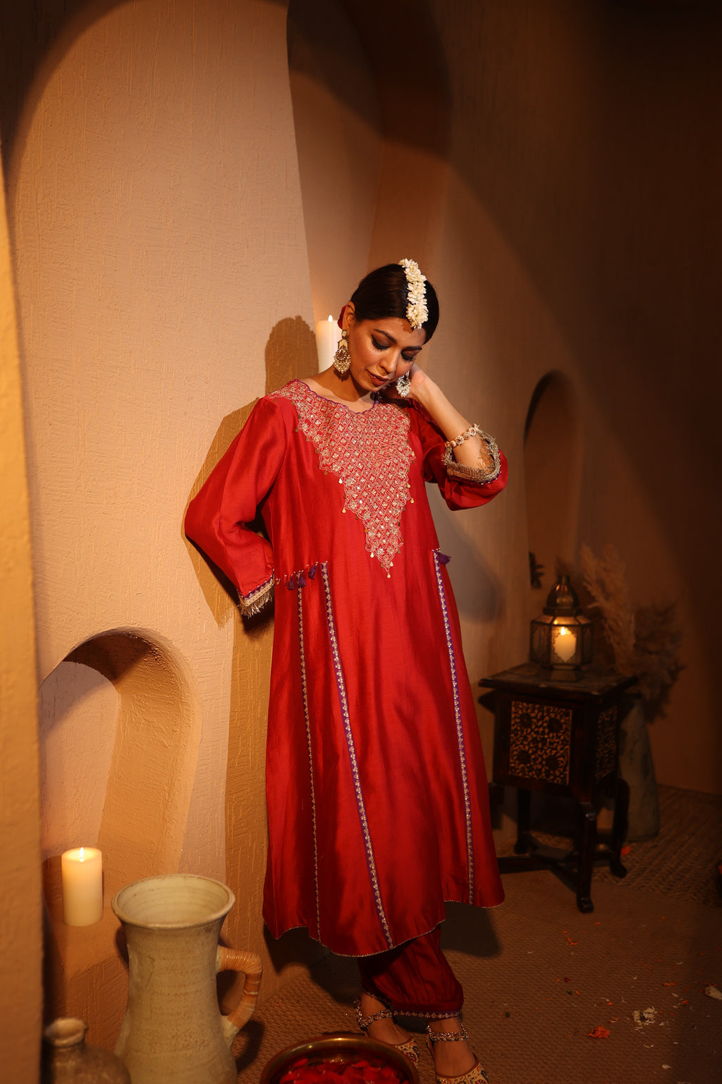 51Z213-RO Red Cheed Work Georgette Sharara Suit