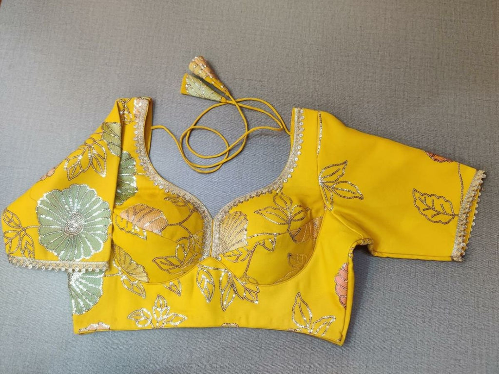 50V310-RO Peach Banarasi Saree Blouse with Mirror Lace