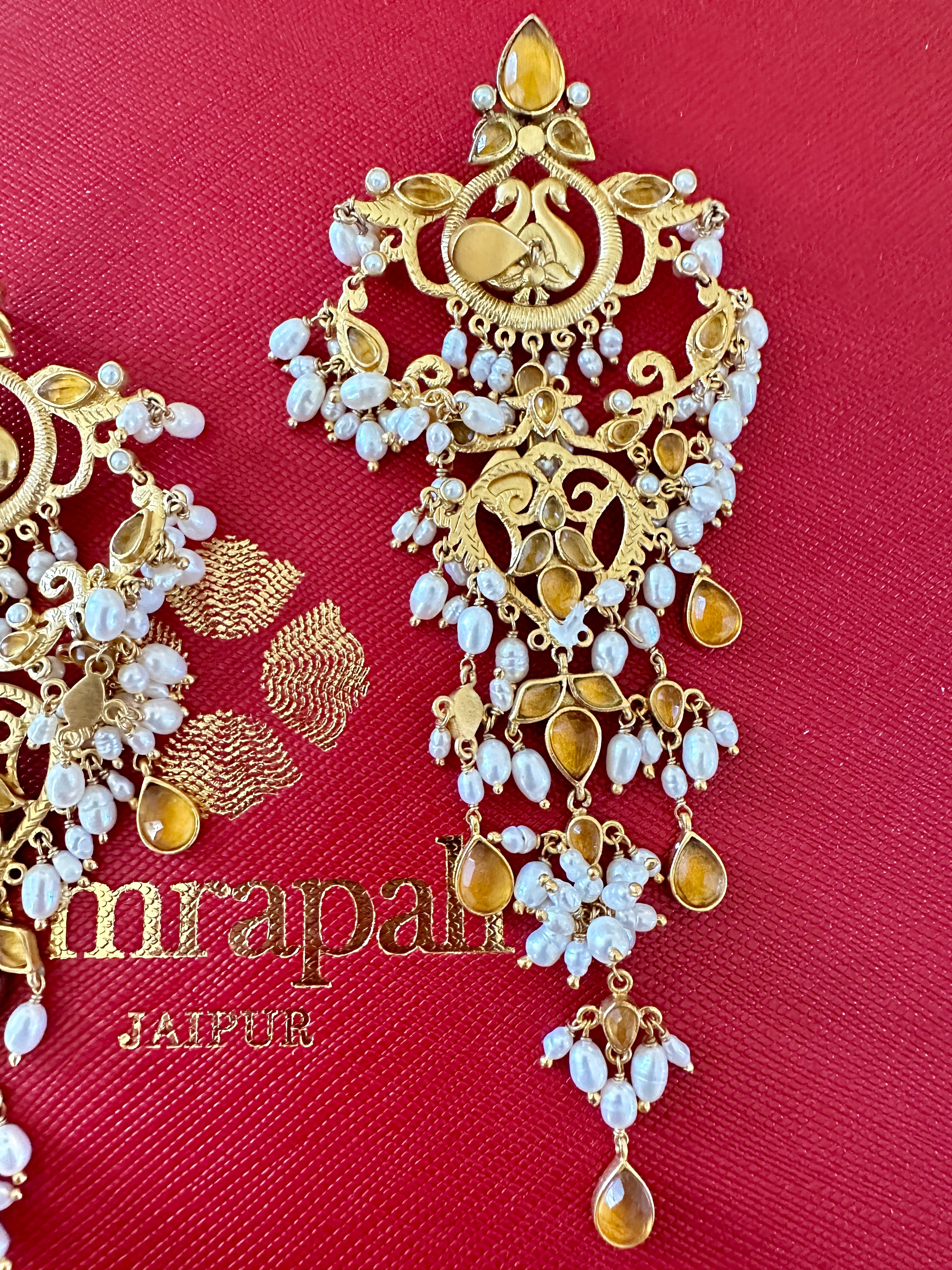 Add an elegant touch to your style with this beautiful gold plated drop earrings with glass drop tassels. Shop gold plated jewelry in USA from Pure Elegance.