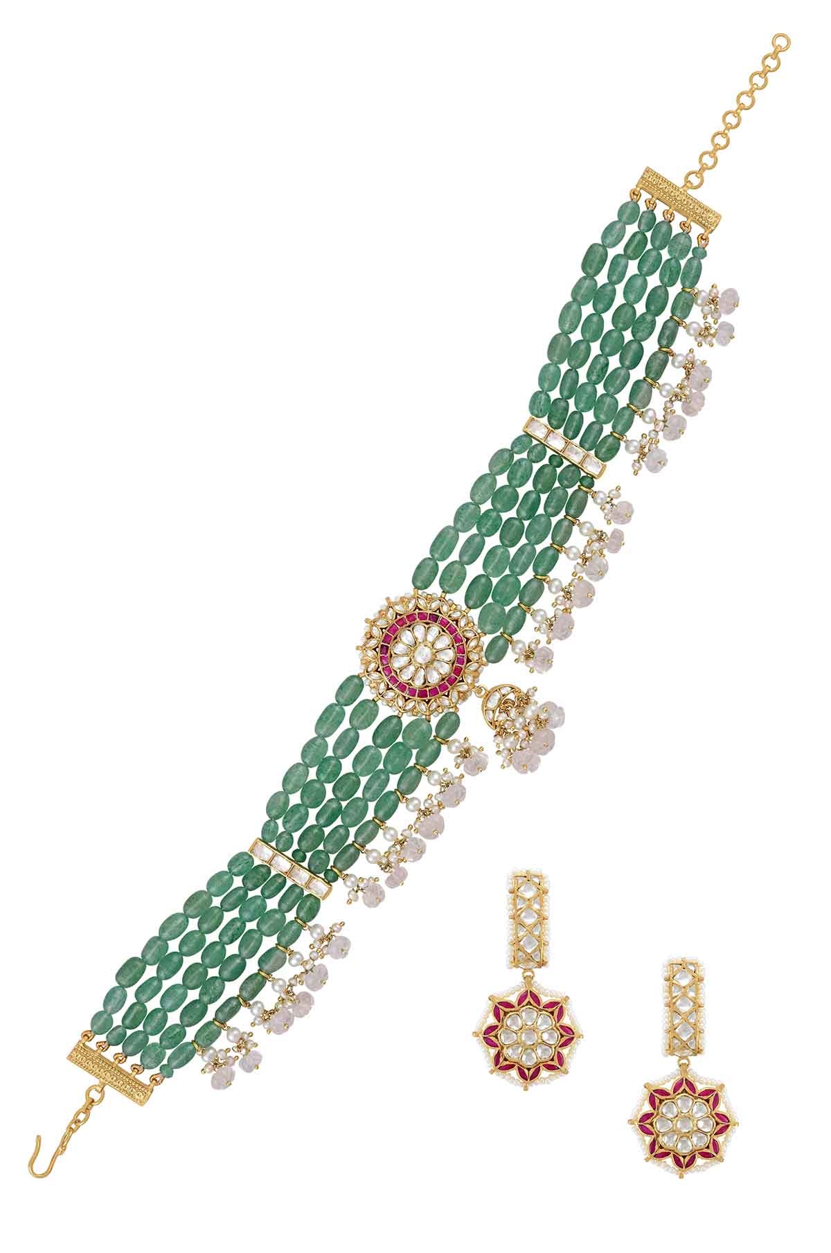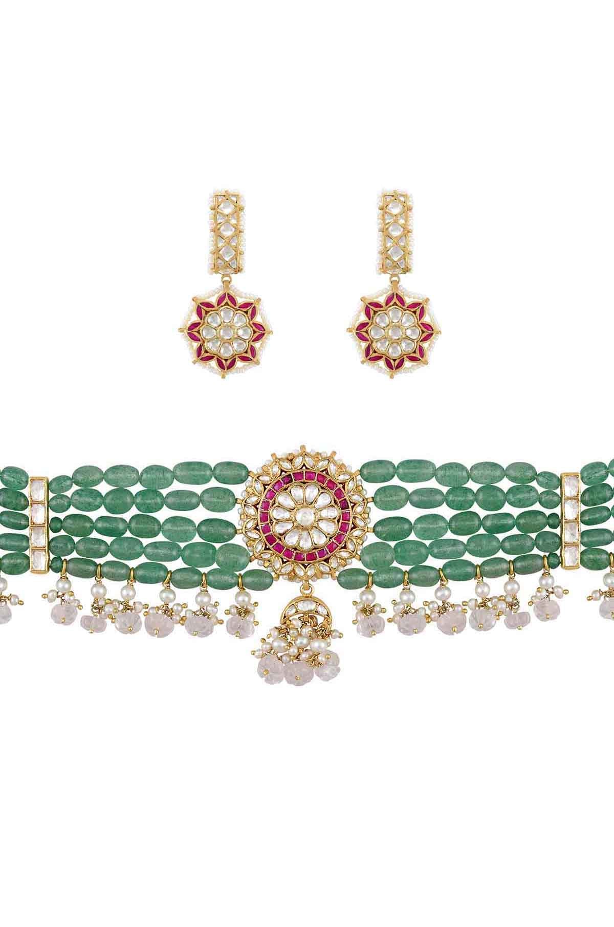 Beautiful colorful stone and glass gold plated choker set. Shop Amrapali jewelry from Pure Elegance in India.