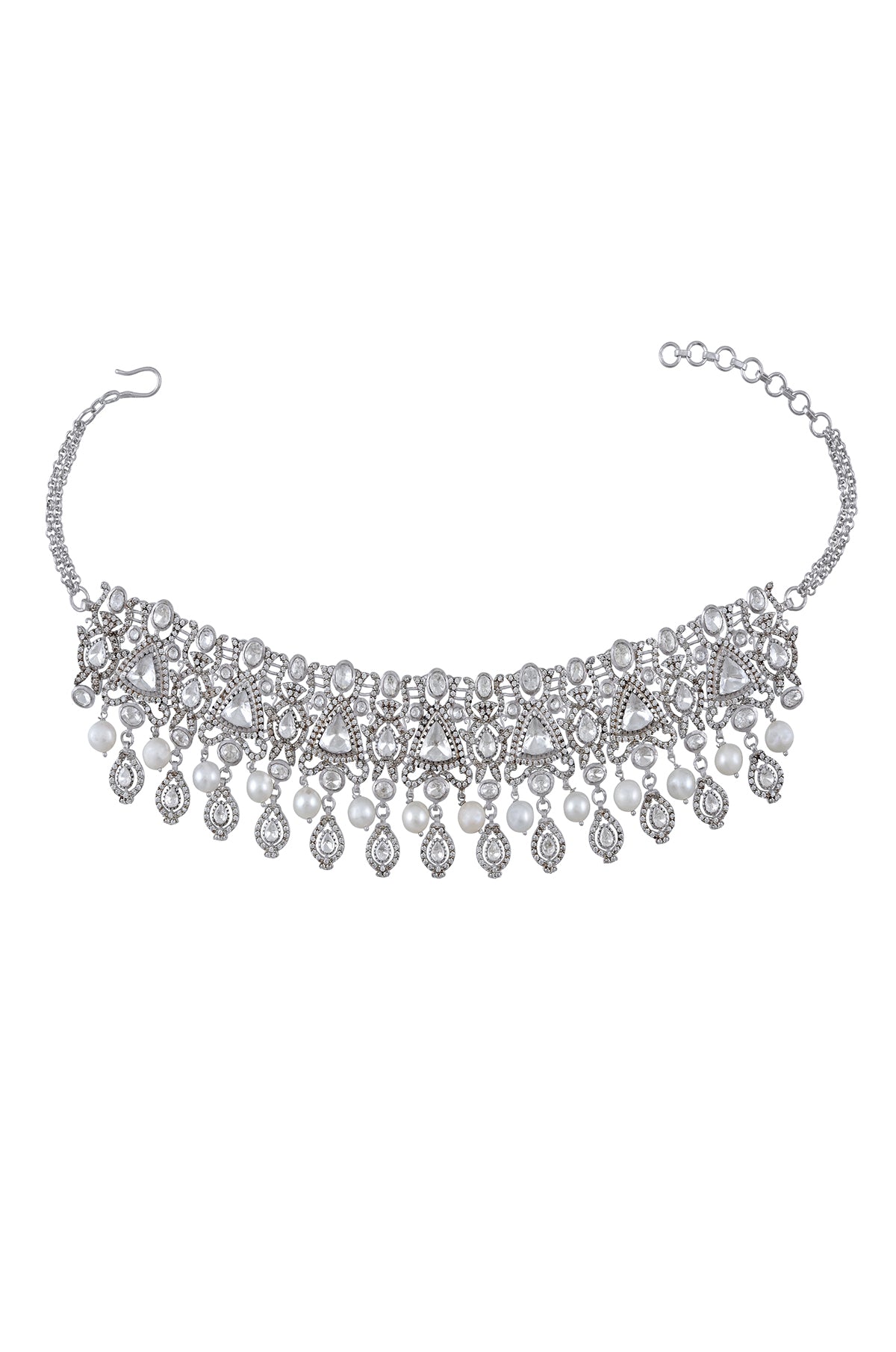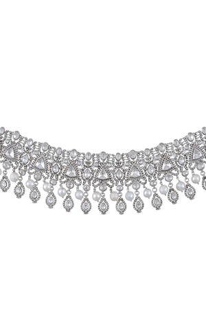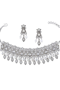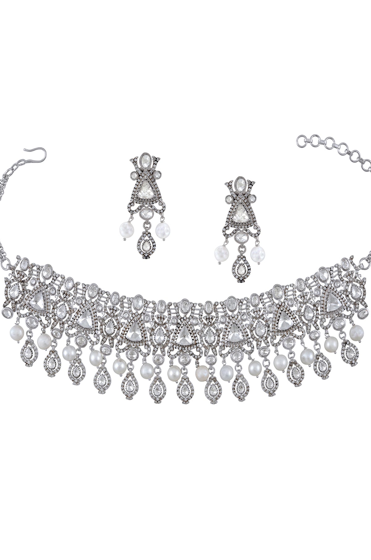Beautiful silver glass and zircon necklace with earrings. Shop Amrapali jewelry from Pure Elegance in India.