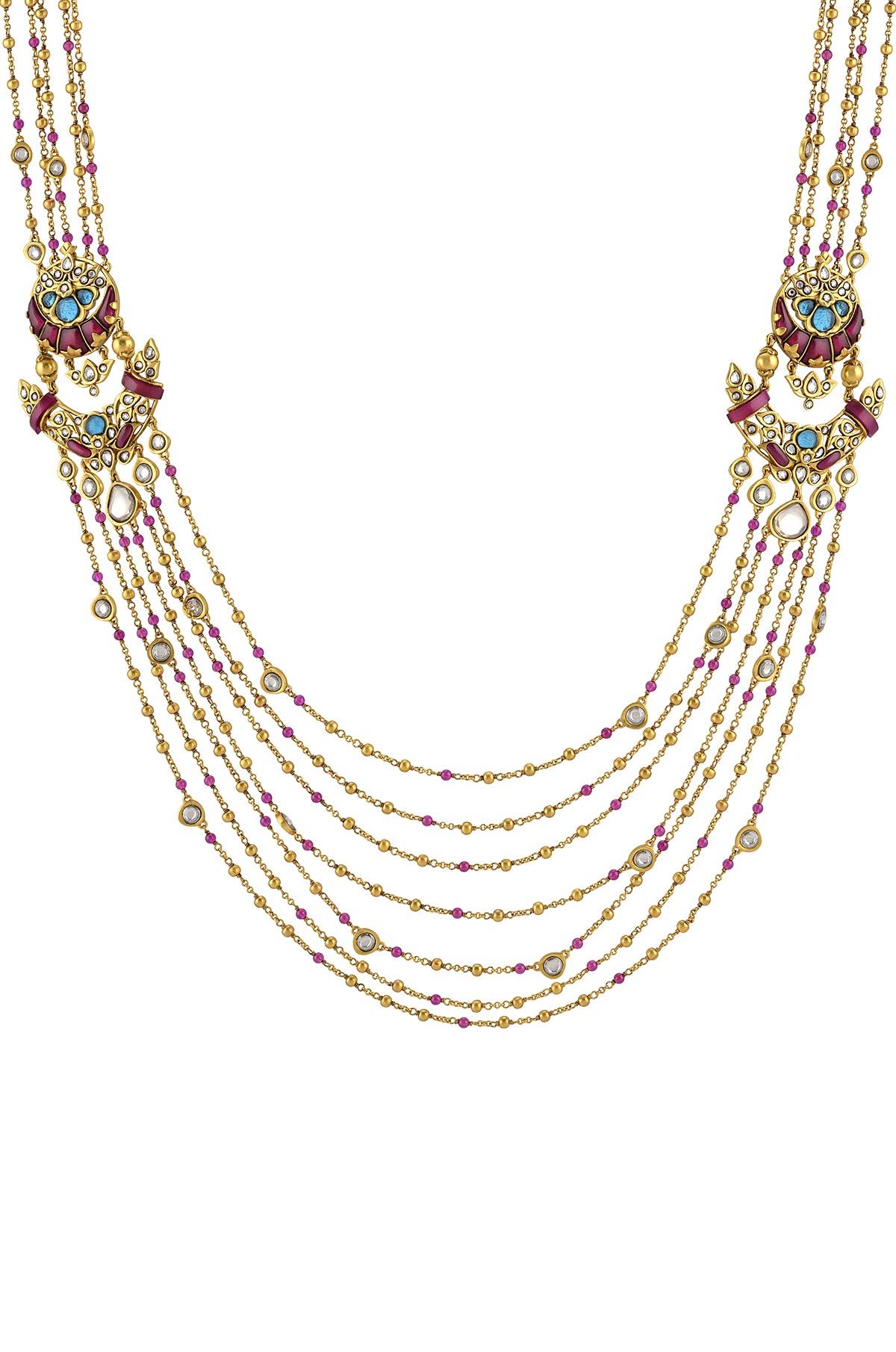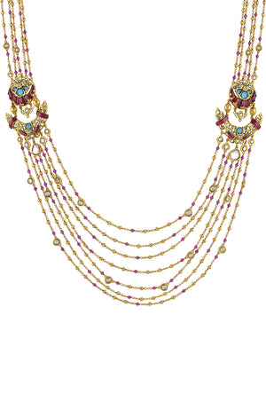 Beautiful gold plated bead and glass strings necklace. Shop Amrapali jewelry from Pure Elegance in India.