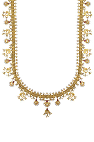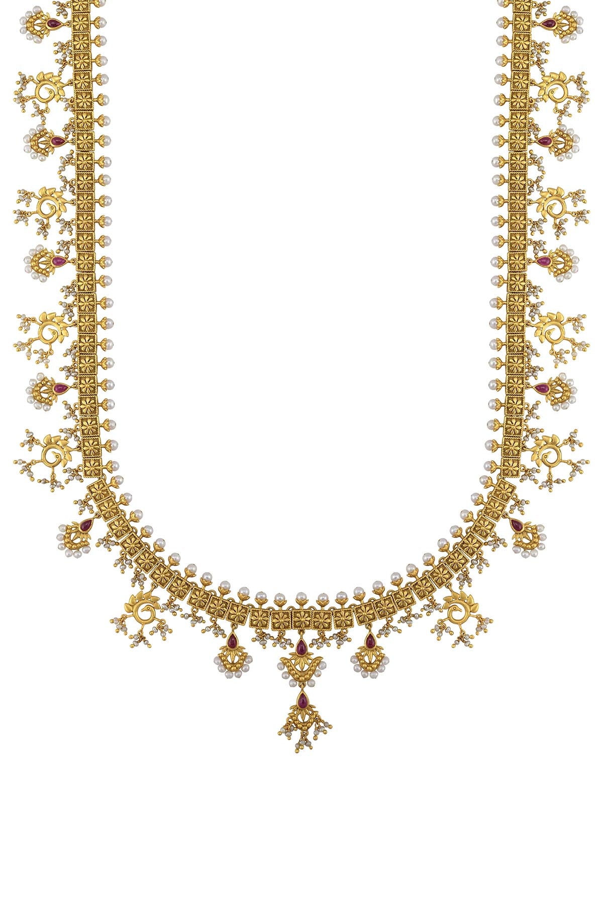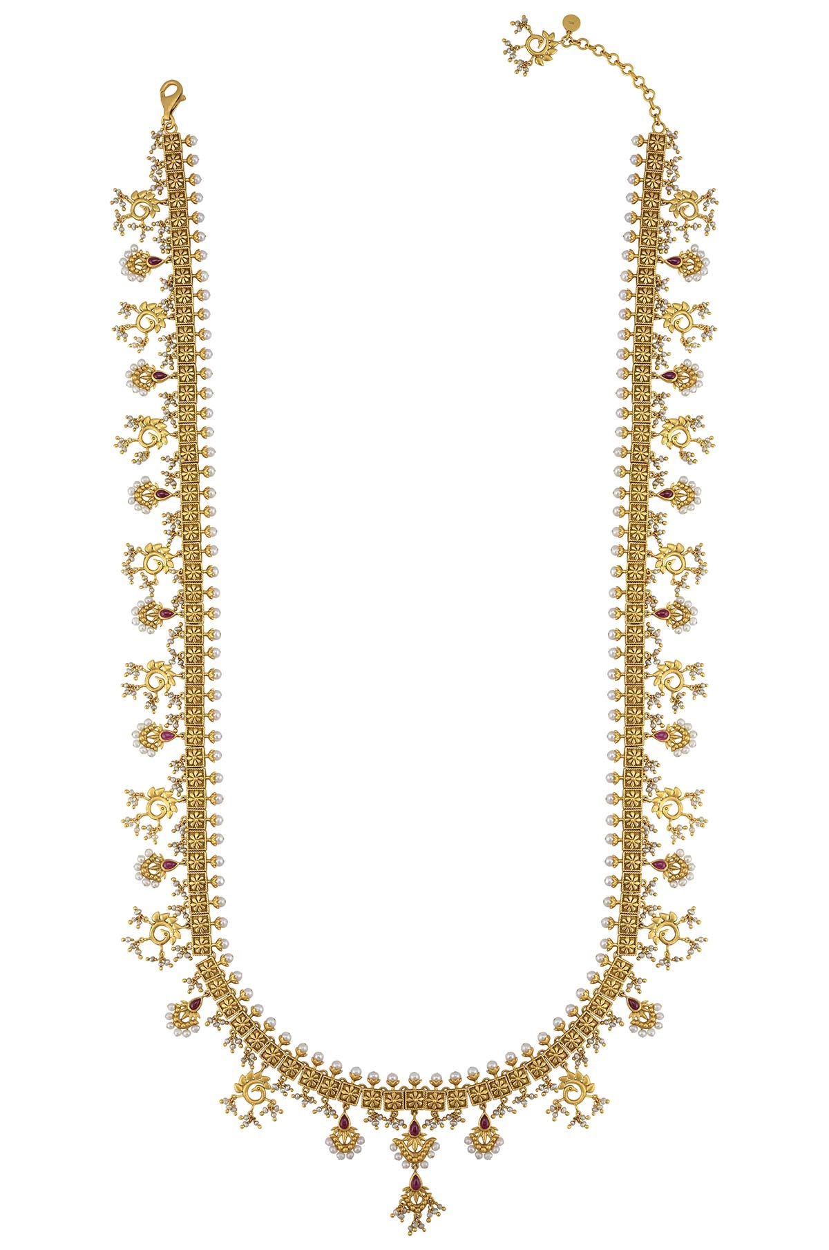 Beautiful gold plated delicate pearl and glass long necklace. Shop Amrapali jewelry from Pure Elegance in India.