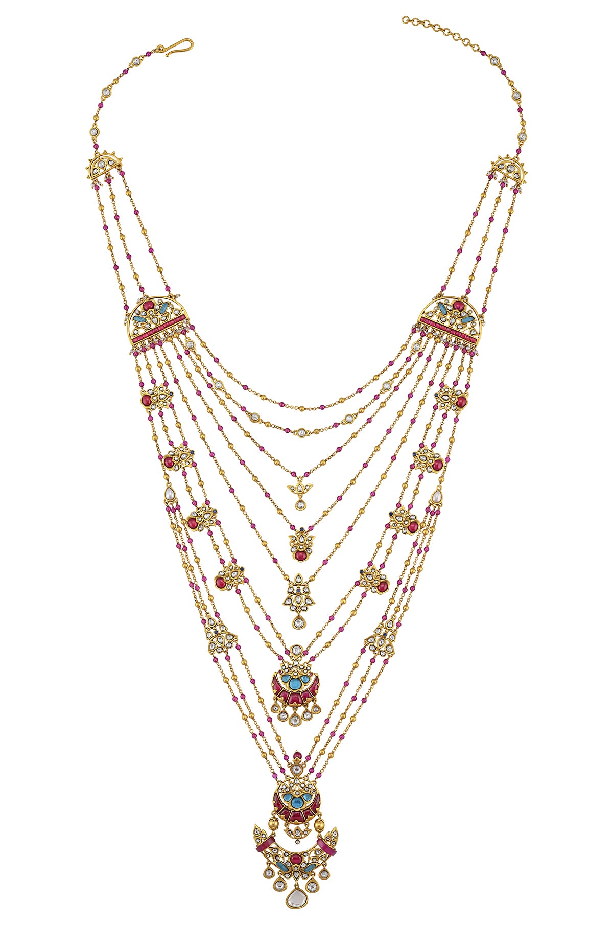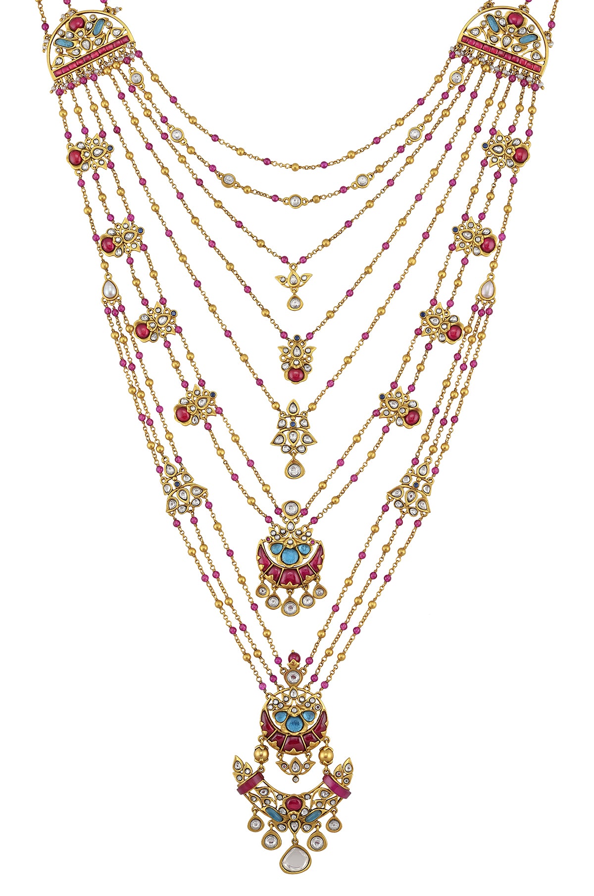 Beautiful gold plated multi glass multi layer necklace. Shop Amrapali jewelry from Pure Elegance in India.