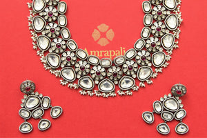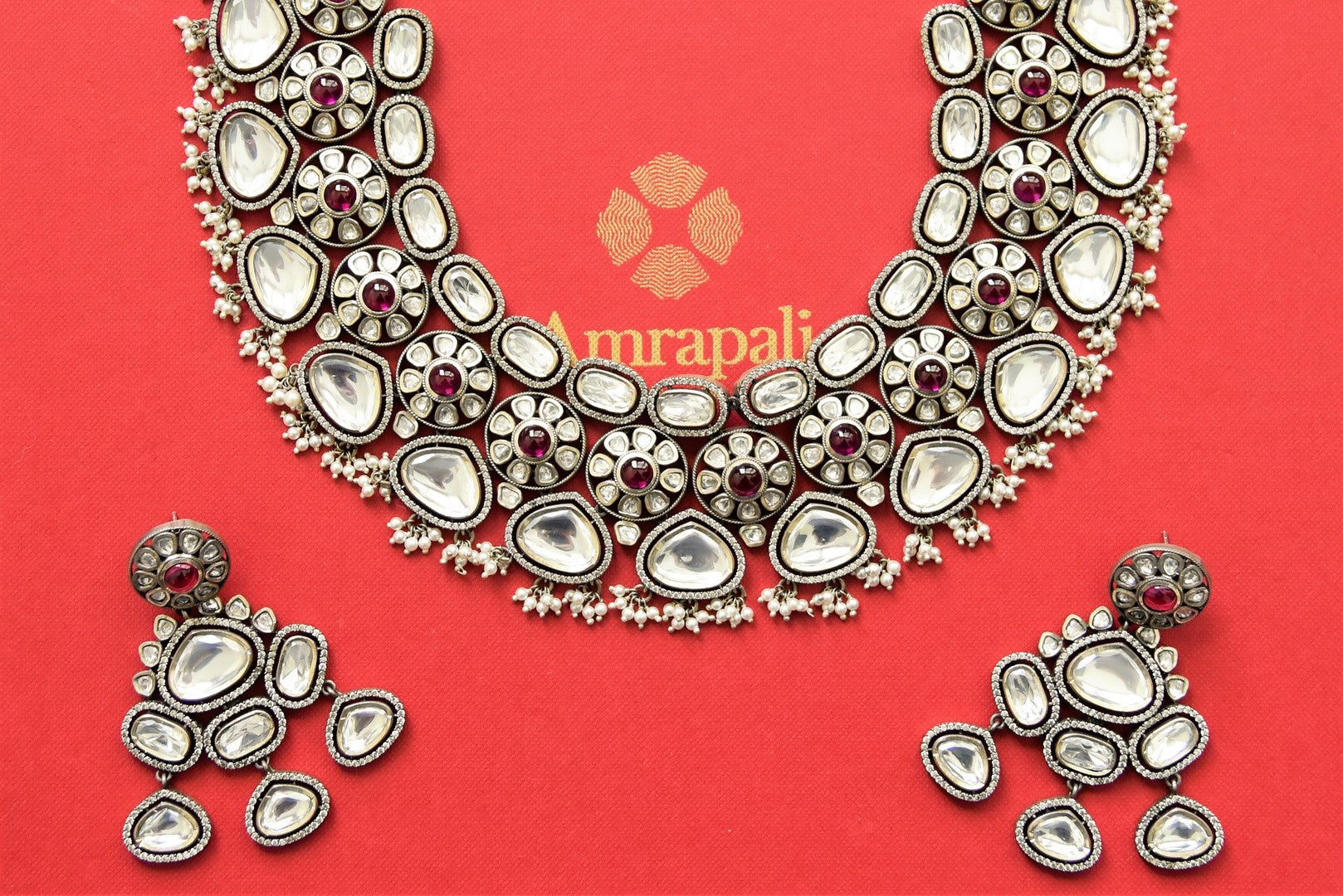 Beautiful heavy polki necklace set with earrings. Shop Amrapali jewelry in USA from Pure Elegance.