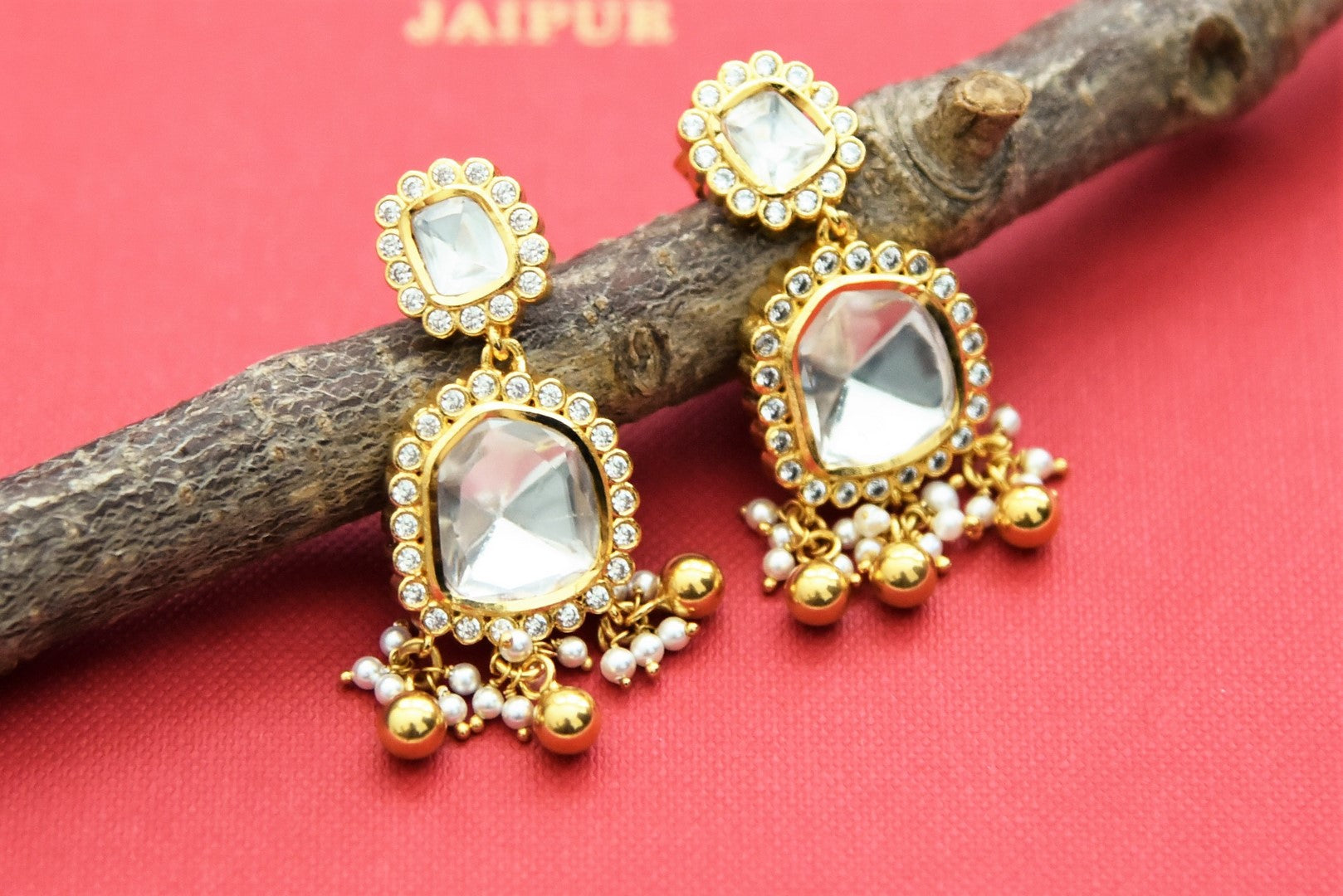 Beautiful gold plated layered polki necklace set. Shop Amrapali jewelry in USA from Pure Elegance