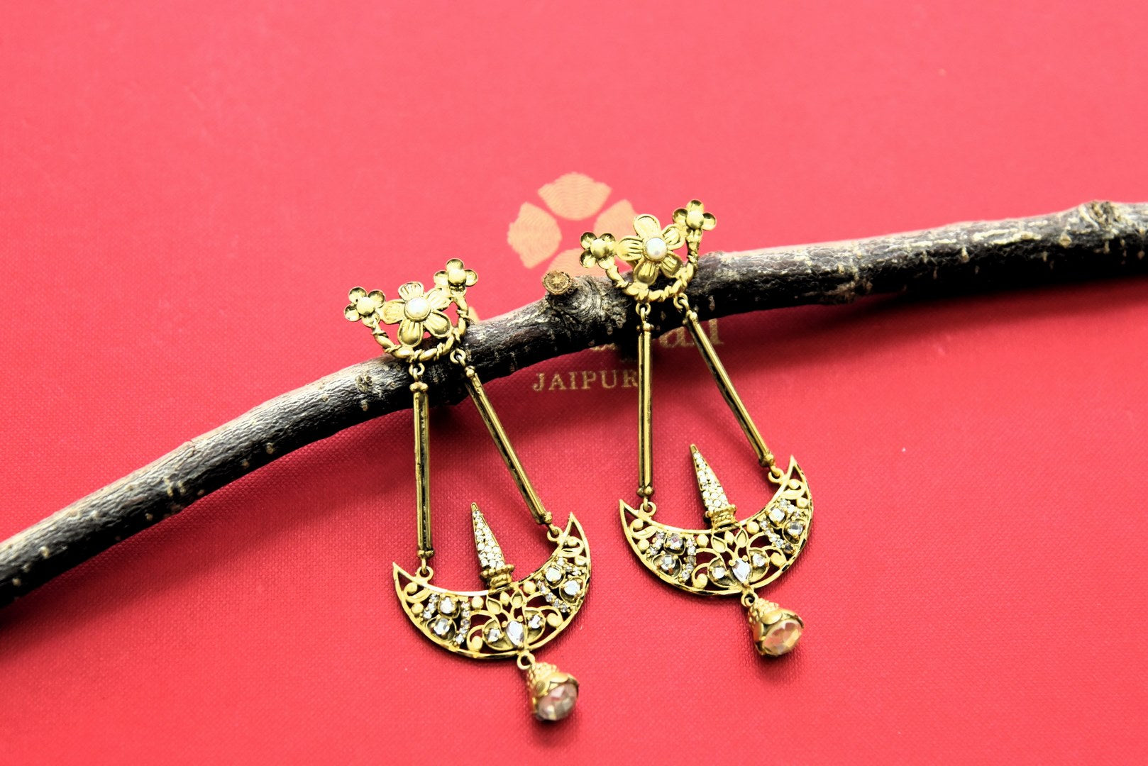 Beautiful gold plated floral dangler earrings. Shop Amrapali jewelry in USA from Pure Elegance.