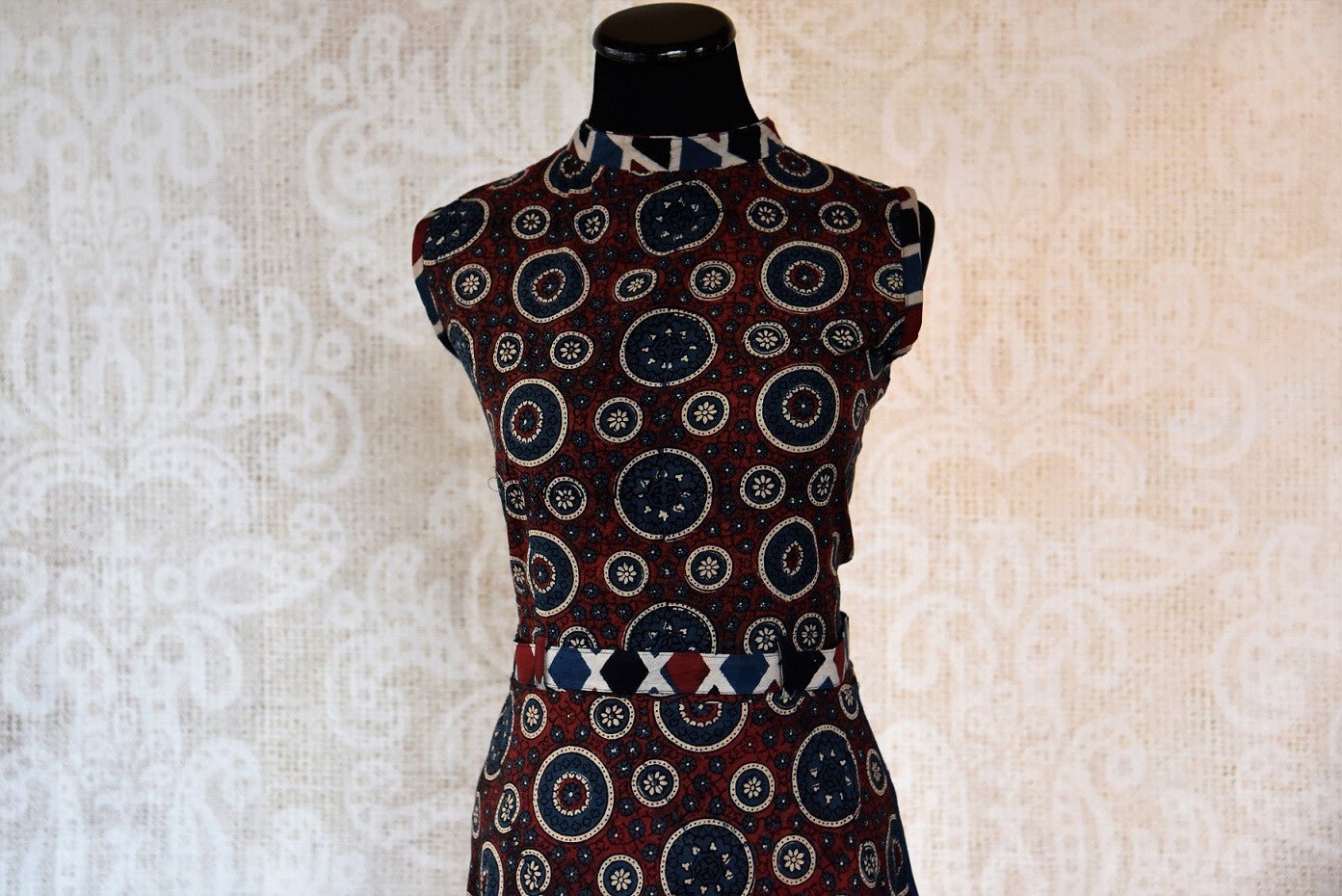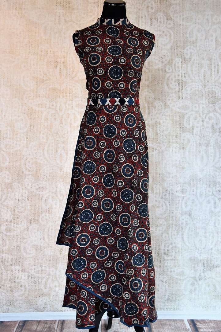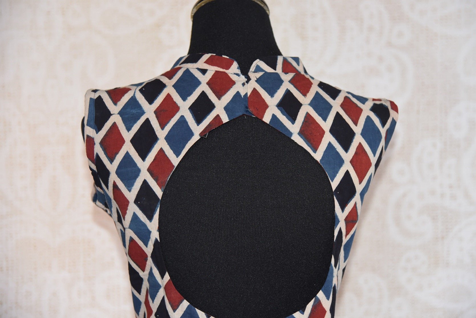 Classy multicolored traditional cotton dress has adorable ajrakh print on it. The long silhouette along with the back slit add glamour to the outfit.