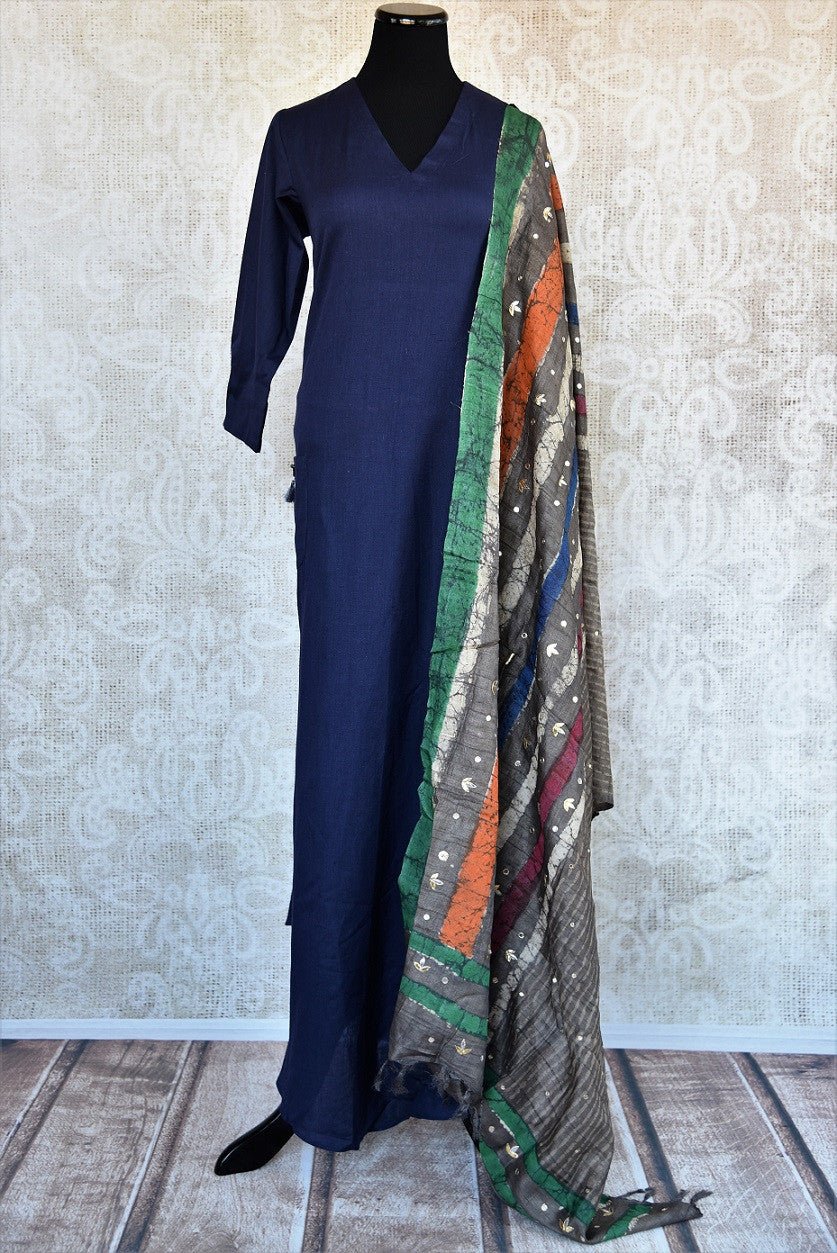 402019 Indian Traditional Navy Blue Silk Cotton Dress from Pure Elegance