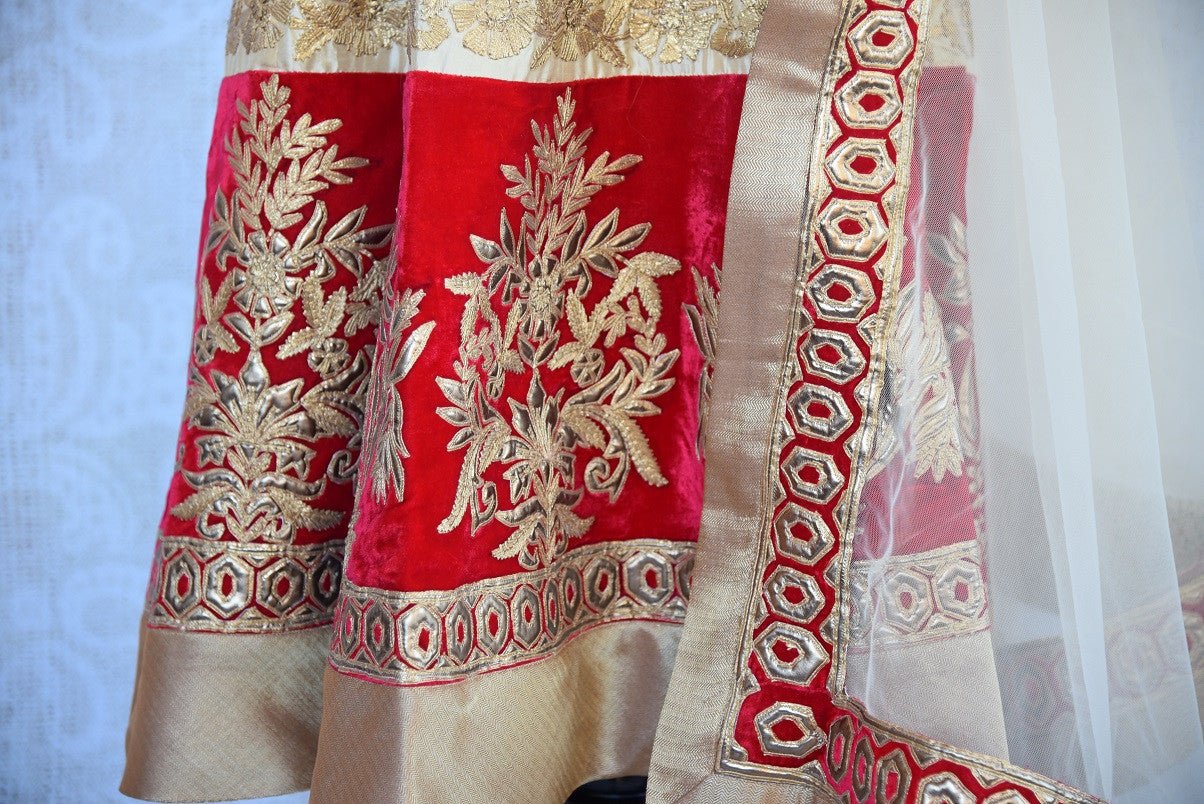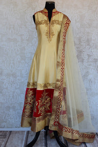 501362 Ethnic Indian Cream and Red Pure Elegance Silk Suit with Dupatta