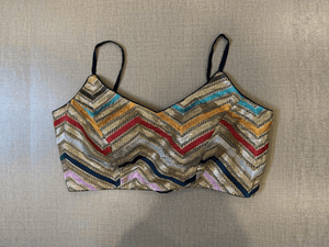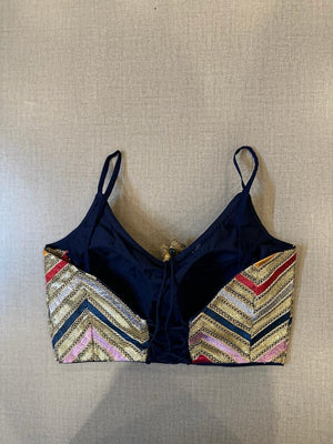 Beautiful navy blue and golden work strappy saree blouse. Buy designer blouse in USA from Pure Elegance.