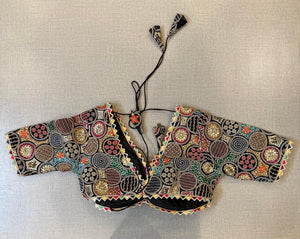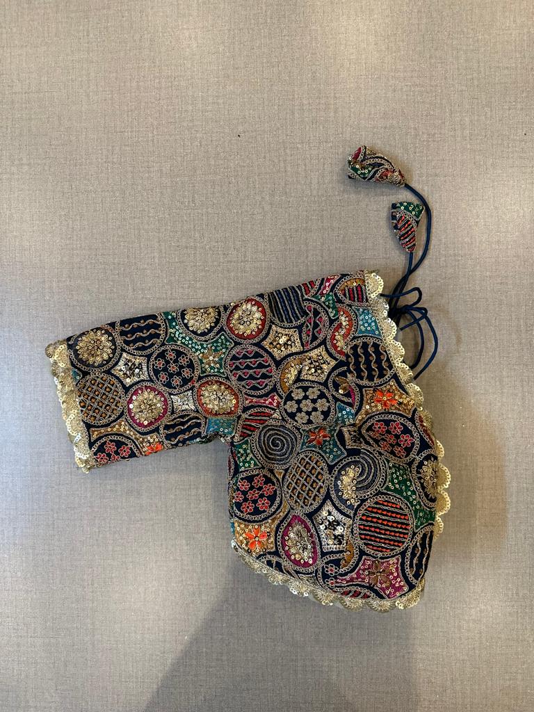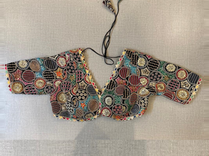 Beautiful black designer saree blouse with multicolor embroidery. Buy designer blouse in USA from Pure Elegance.