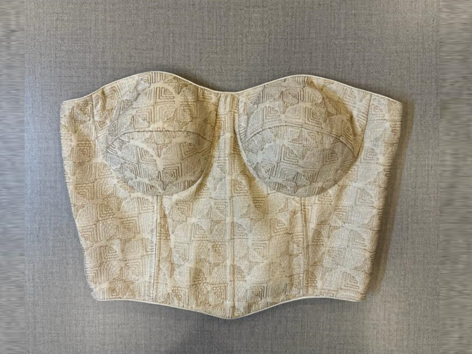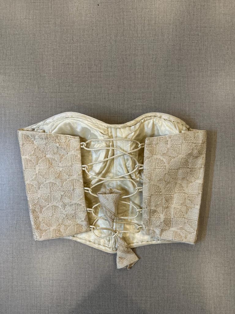 Beautiful off-white embroidered corset saree blouse. Buy designer blouse in USA from Pure Elegance.