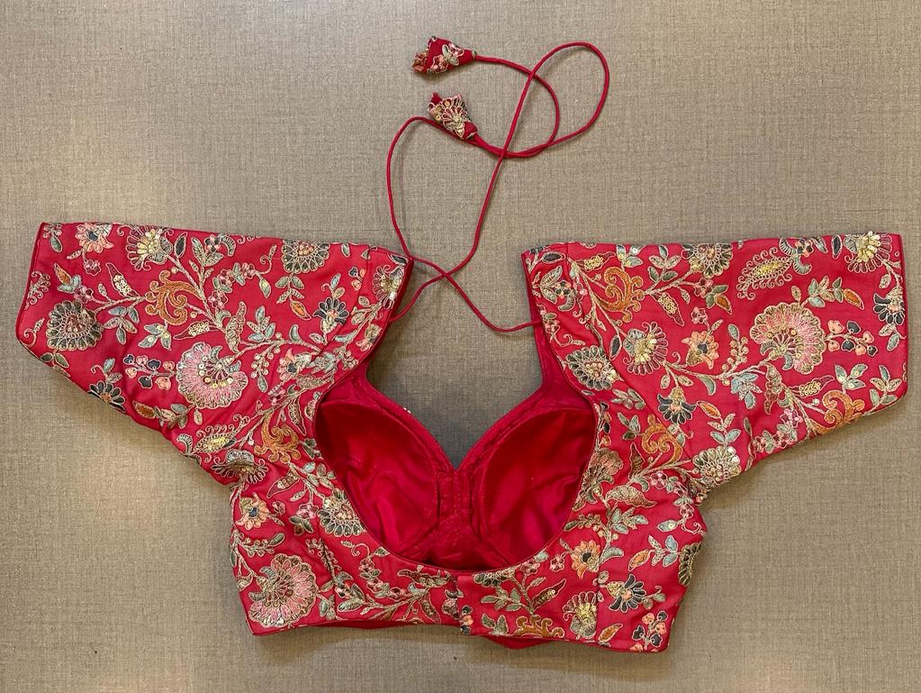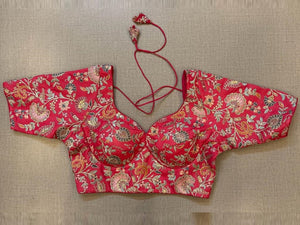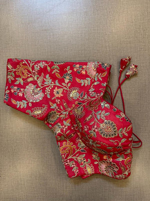 Exquisite dark pink embroidered choli-cut saree blouse. Buy designer blouse in USA from Pure Elegance.
