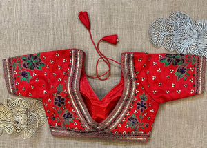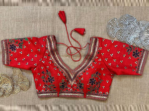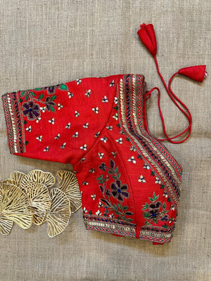 Stunning red heavy embroidery bridal saree blouse. Buy designer blouse in USA from Pure Elegance.