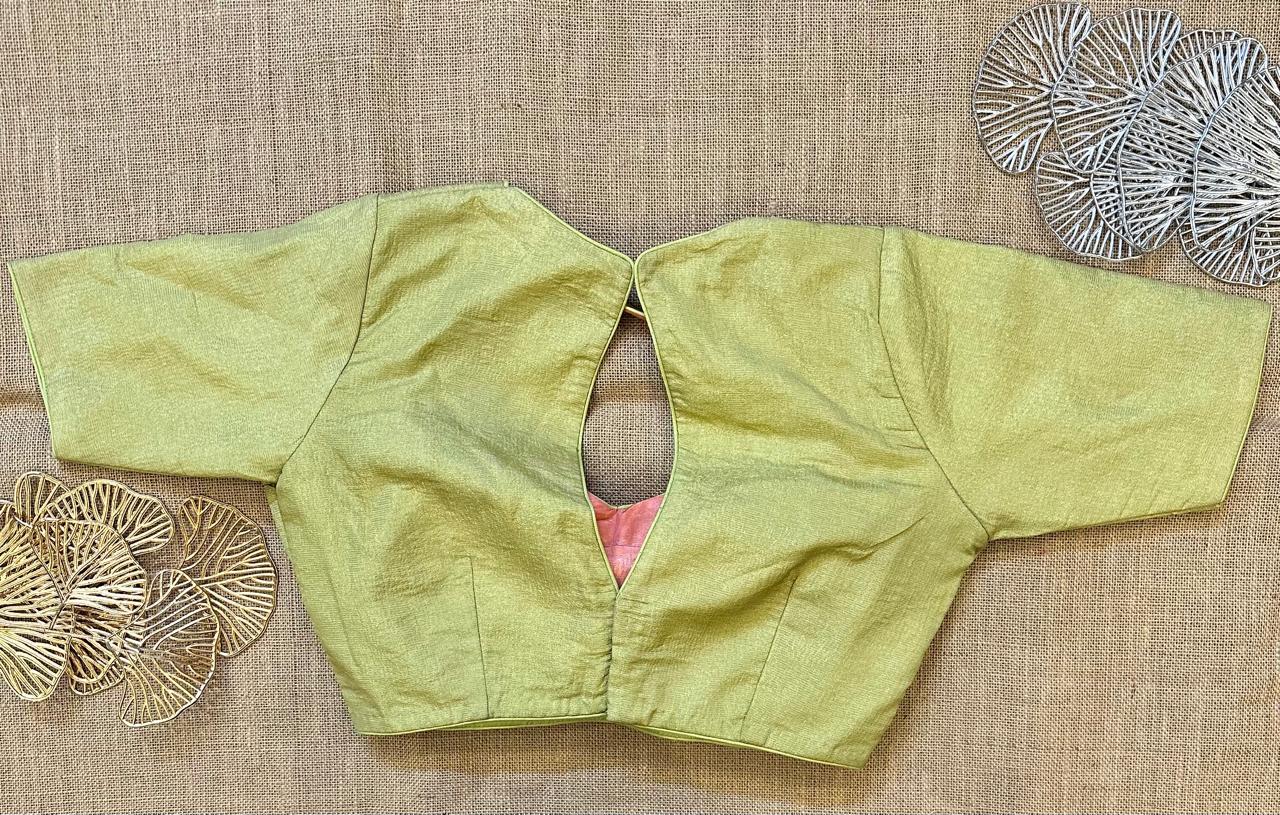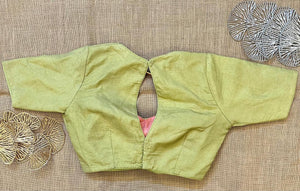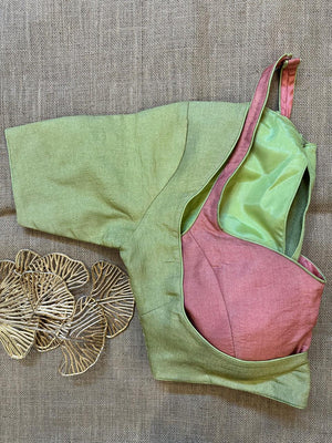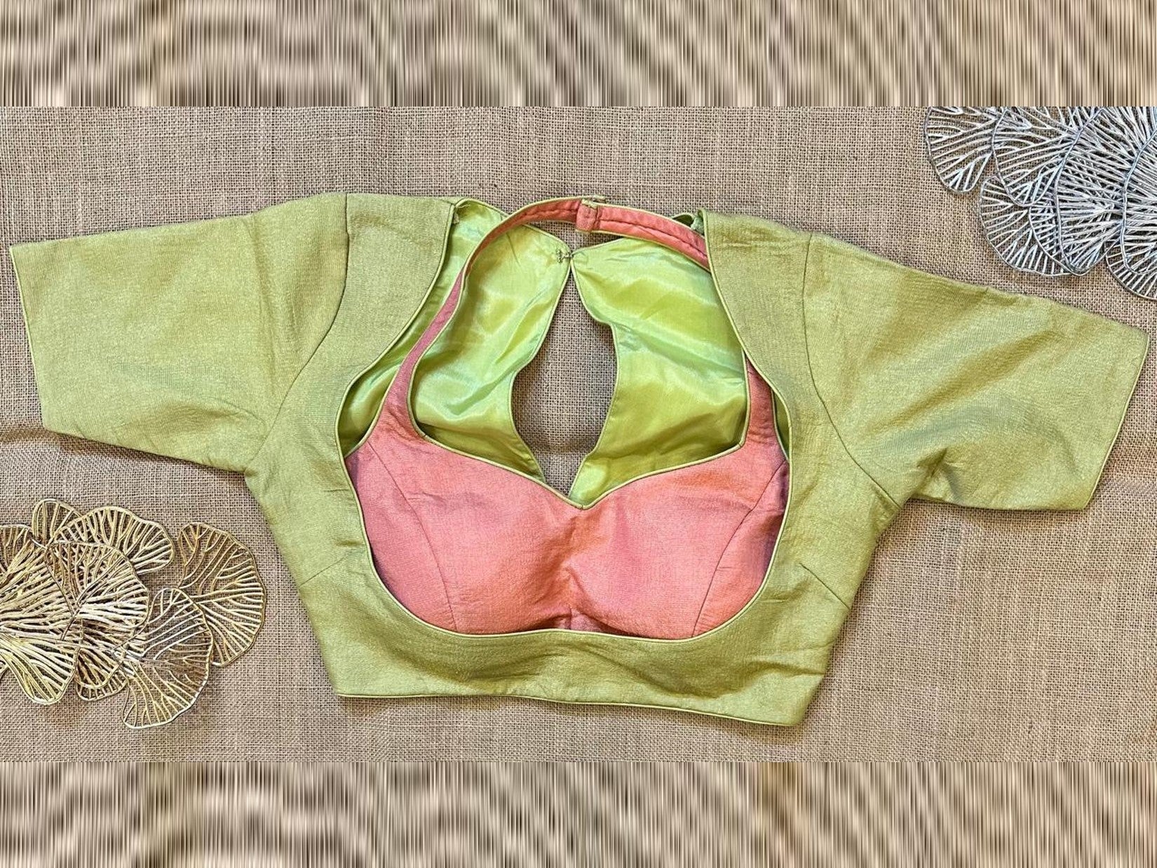 Stunning lime green and pink designer sari blouse. Buy designer blouse in USA from Pure Elegance.