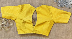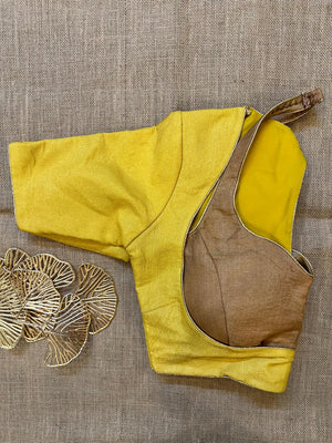 Stunning yellow and beige designer saree blouse. Buy designer blouse in USA from Pure Elegance.