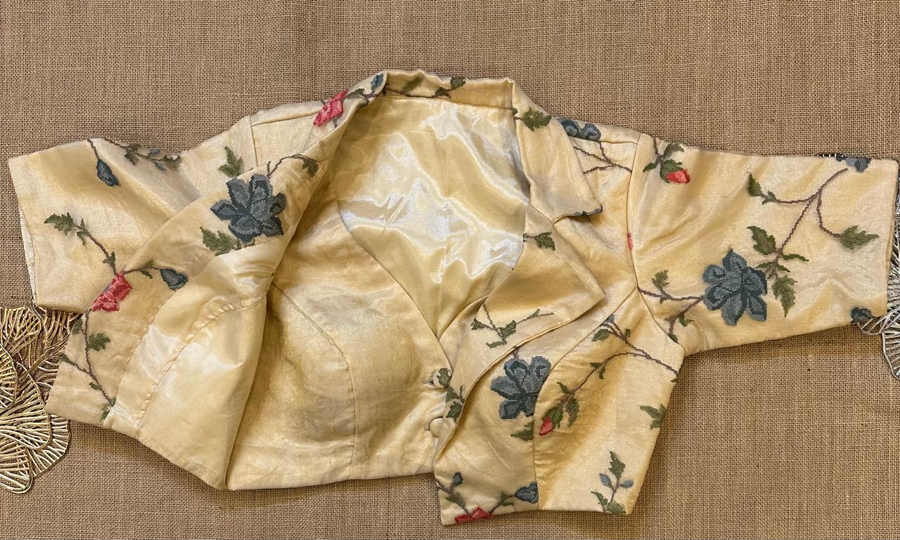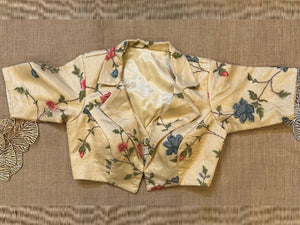 Stunning cream floral designer saree blouse. Buy designer blouse in USA from Pure Elegance.