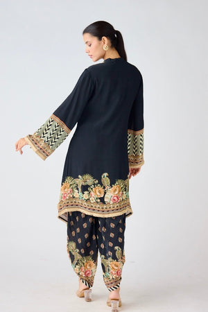 Blue floral printed anarkali suit set featuring mirror, zari & sequin embroidery on neck and belt that adds definition and glamour.  Shop online from Pure Elegance.