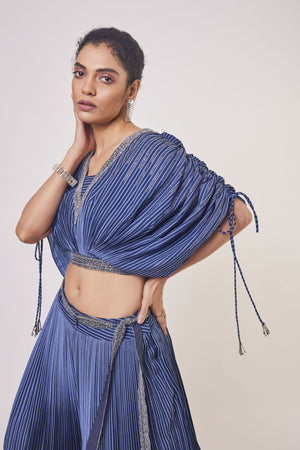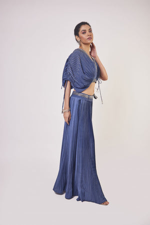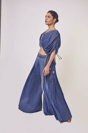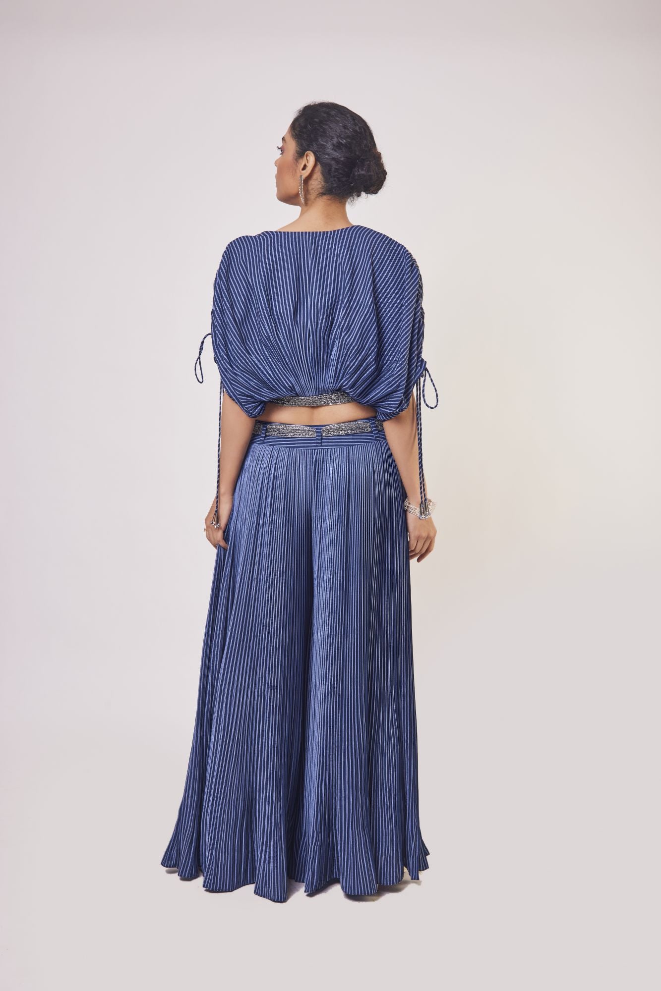 Keep it stylish on special occasions in this blue embellished Indowestern palazzo set. Shop online from Pure Elegance.