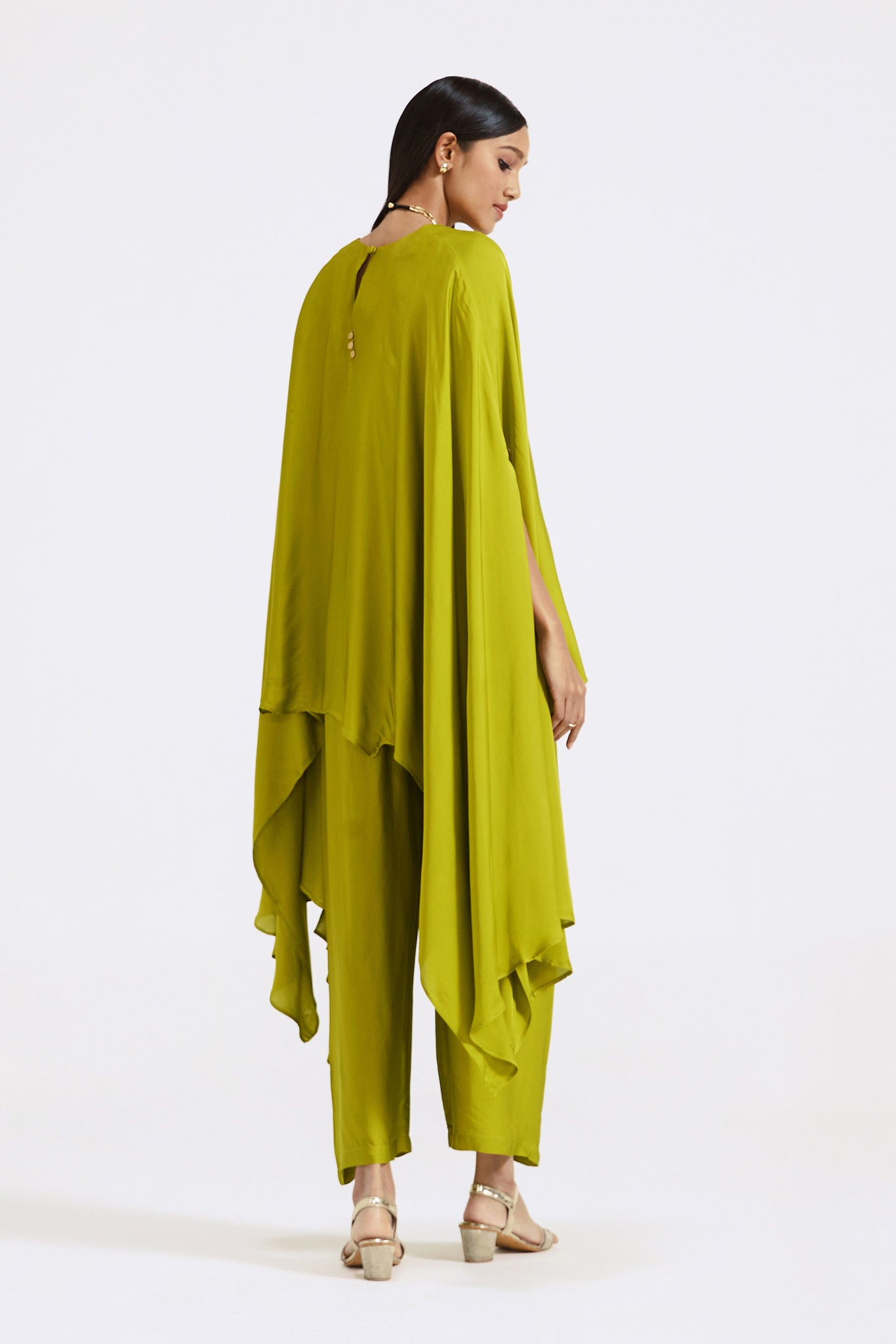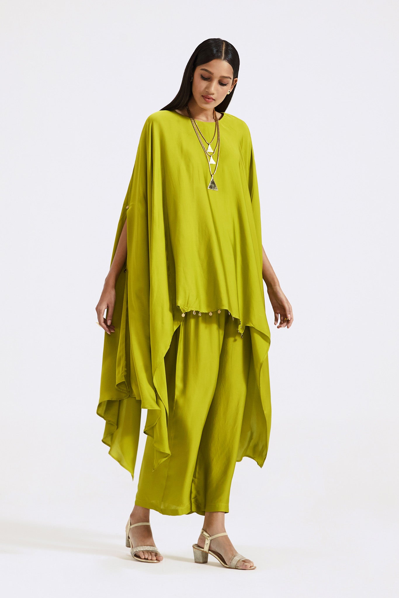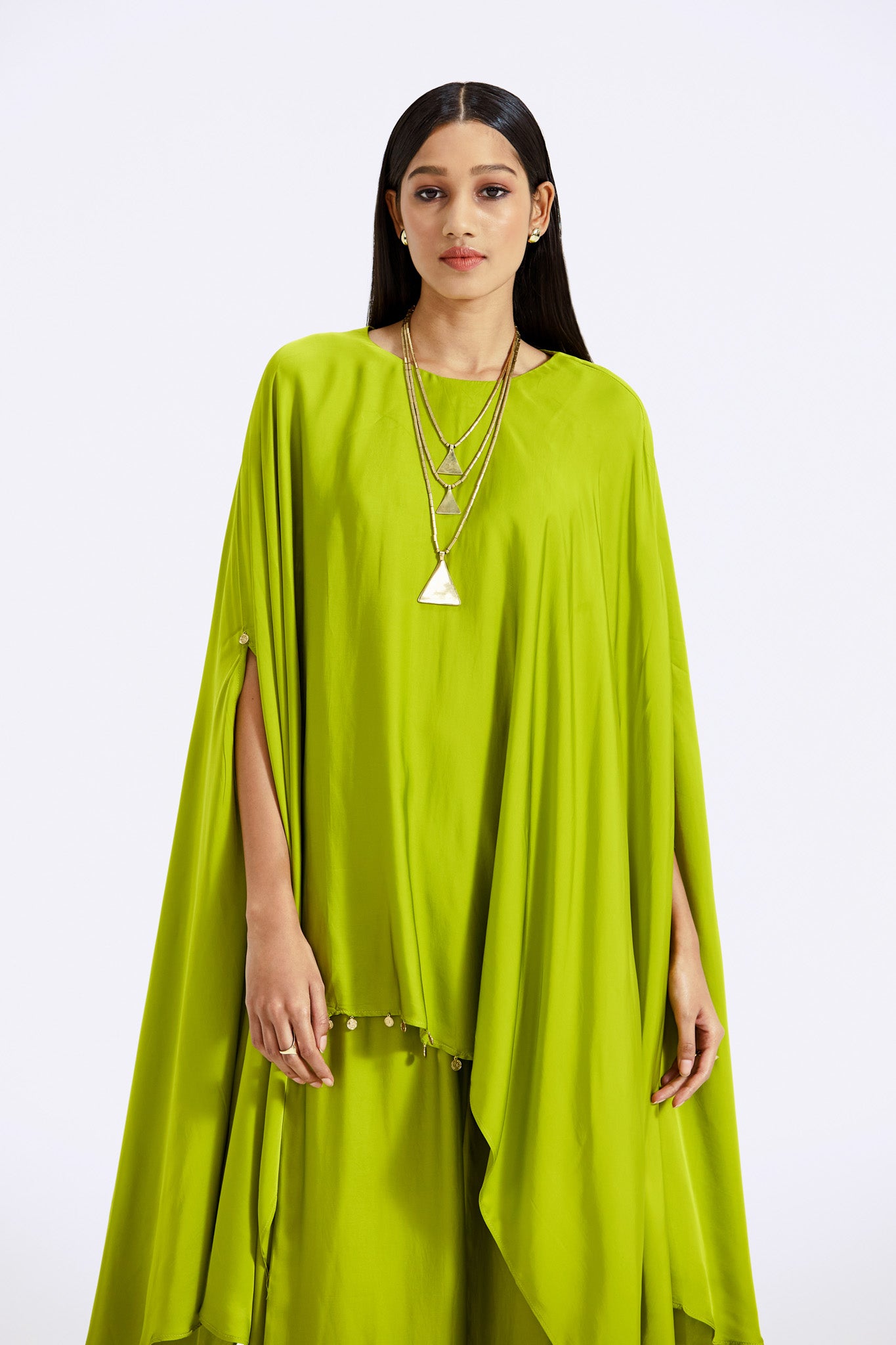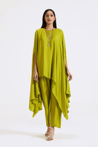 Keep it stylish on special occasions in this stunning lime green modal satin contemporary co-ord set. Shop online from Pure Elegance.