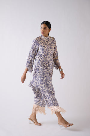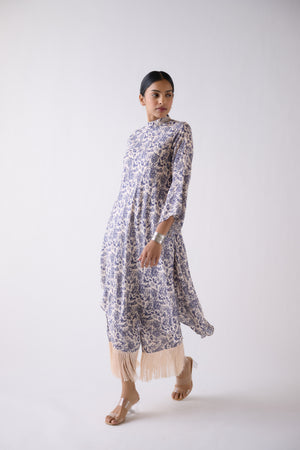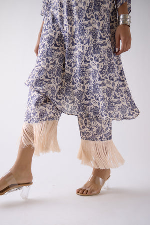 Keep it stylish on special occasions in this effortless ivory printed muslin co-ord set with fringe pants. Shop online from Pure Elegance.