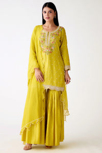 Stunning rani pink embroidered chanderi Anarkali suit is a perfect festive wear. It comes with a matching dupatta. Shop online from Pure Elegance.