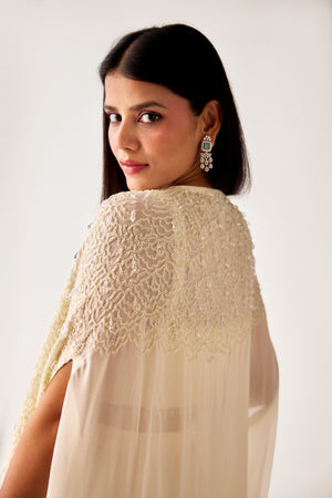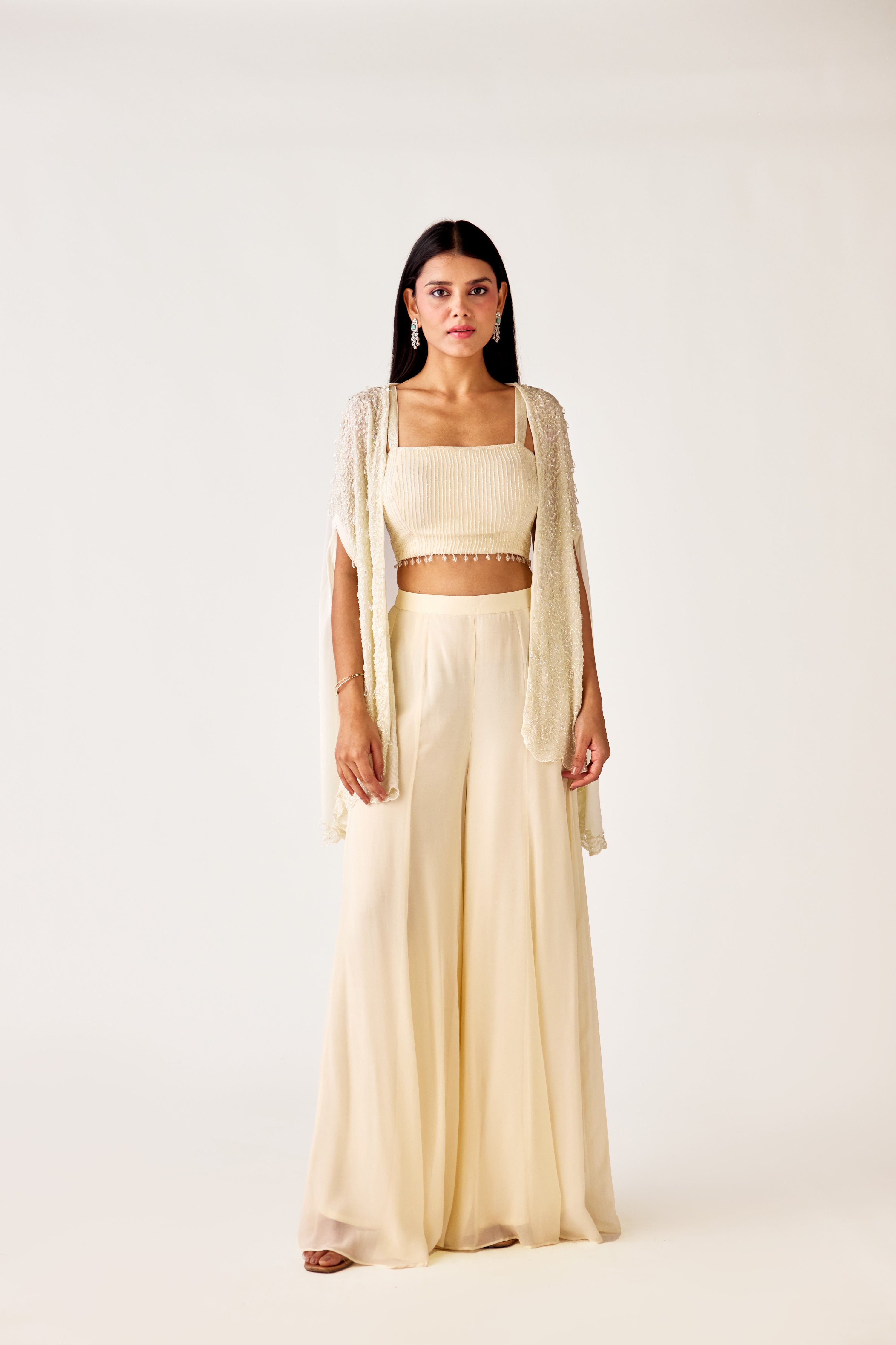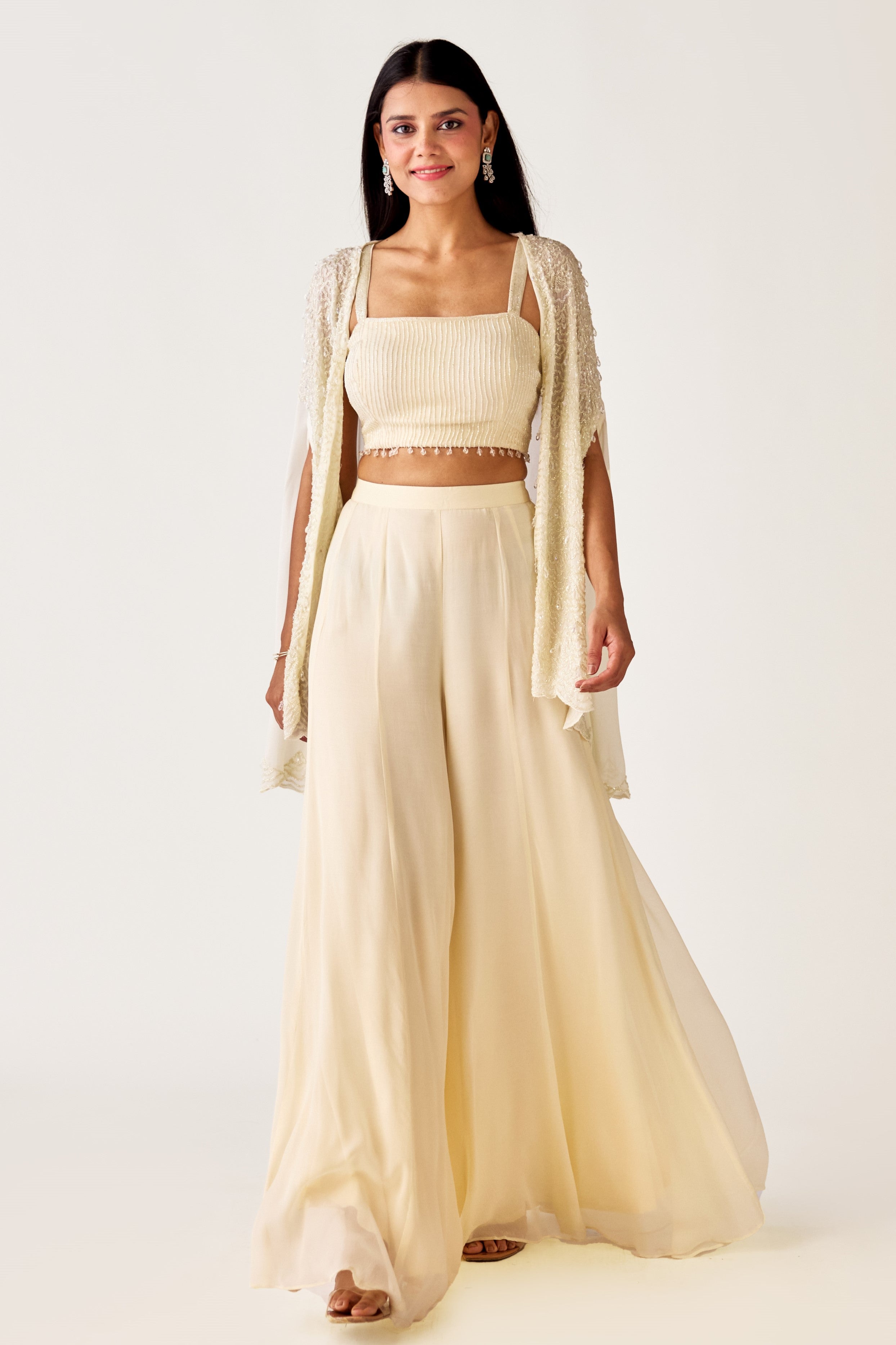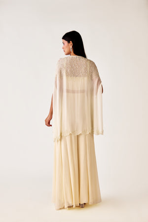 Stunning ivory embroidered georgette sharara set is a stylish wear for special occasions. Shop online from Pure Elegance.