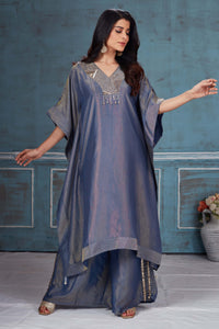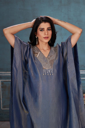 52A163 Blue Embroidered Tissue Georgette Kaftan Pant Set