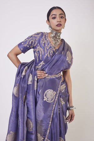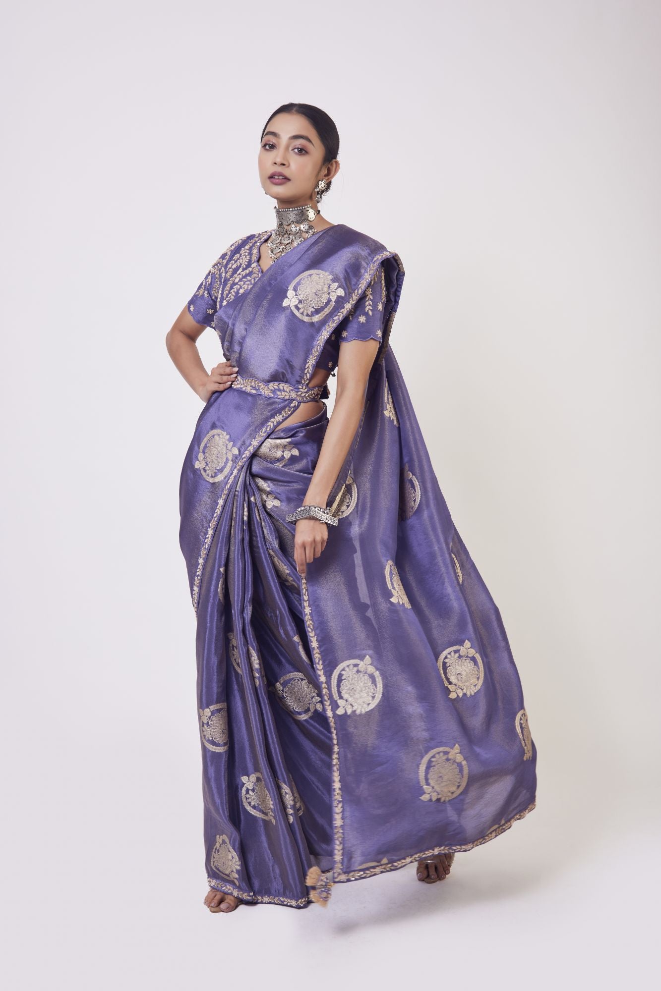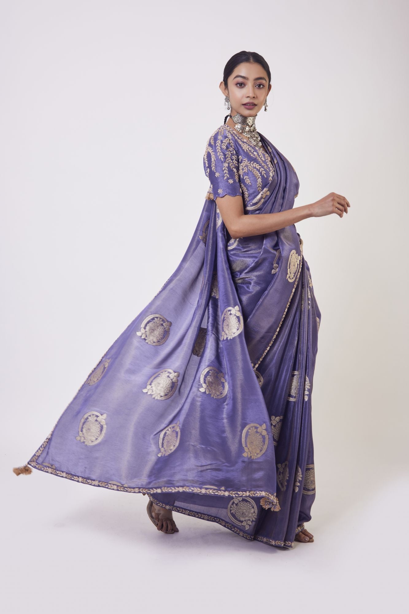 Beautiful purple embroidered handloom saree. It comes with an embroidered saree blouse. Shop designer saris online in USA from Pure Elegance.