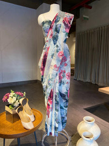 91A312 Grey and White Printed Floral Sequin Georgette Saree
