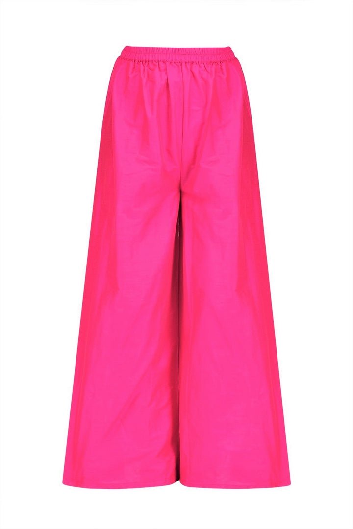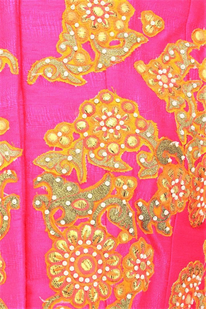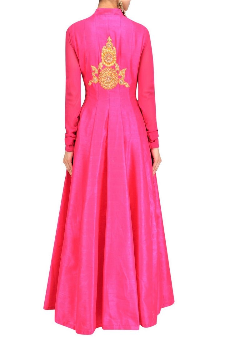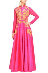 Absolutely striking pink gota patti embroidered full-length jacket Anarkali with palazzo pants is perfect for weddings and parties! It comes with a matching cotton silk palazzo pants. Shop online at Pure Elegance or visit our store in USA!