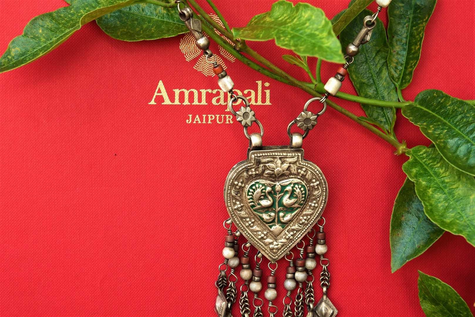 This antique Silver Necklace Agate Enamel necklace has an old world charm. An exquisite piece which can be a perfect to your Indian suits and cotton sarees. Make your jewelry collection one of a kind with this Amrapali necklace. Buy online from Pure Elegance or visit our store in USA!