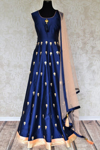 501779 Blue Thread Embroidery Silk Anarkali Suit with Dupatta