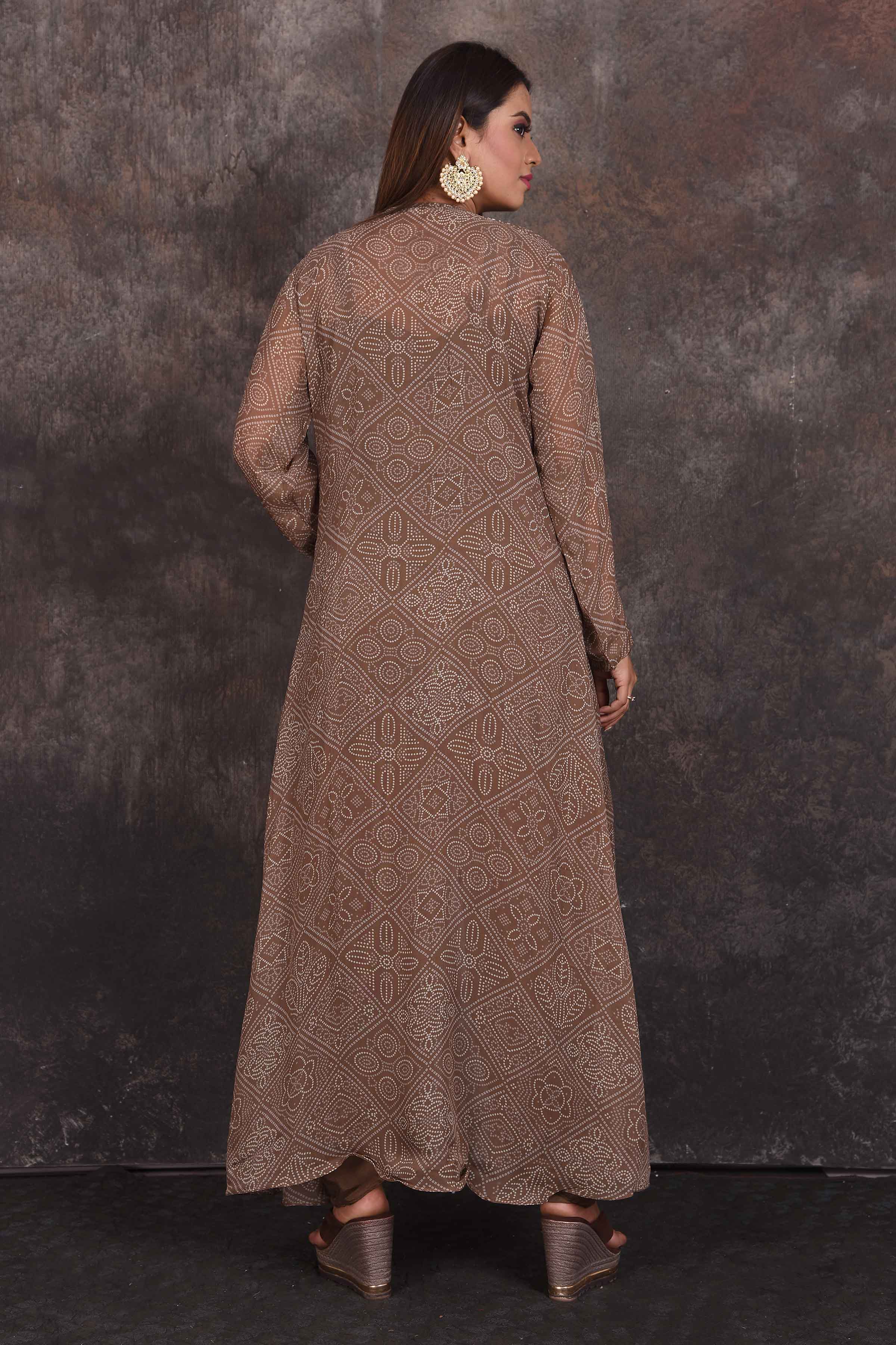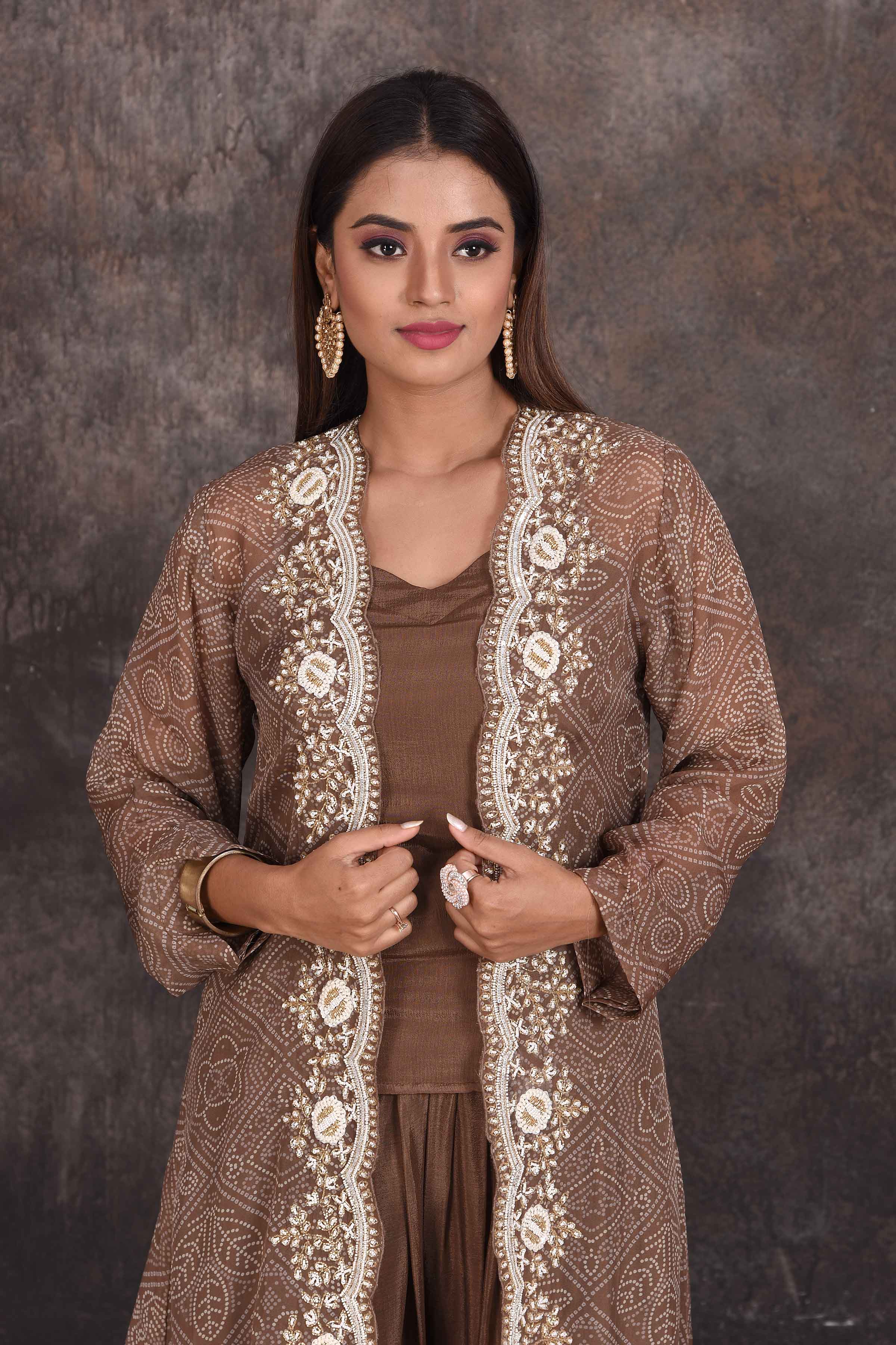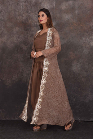 Look stylish on special occasions in this stunning brown salwar suit with embroidered jacket. Shop designer dresses in USA from Pure Elegance.