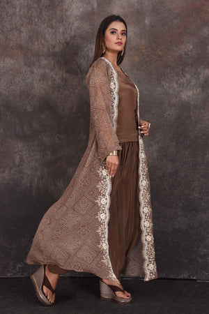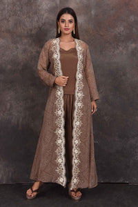 503349 Brown Salwar Suit with Embroidered Jacket