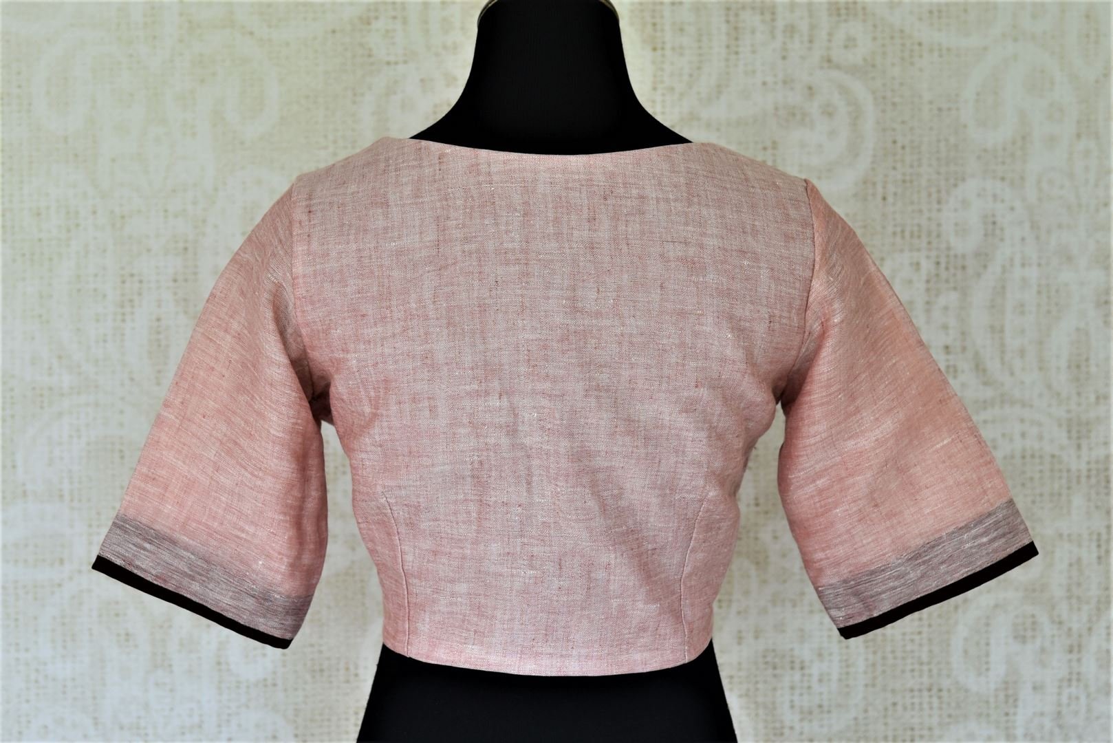 Attractive solid dusty pink color linen saree blouse. Shop designer blouse in USA from Pure Elegance.