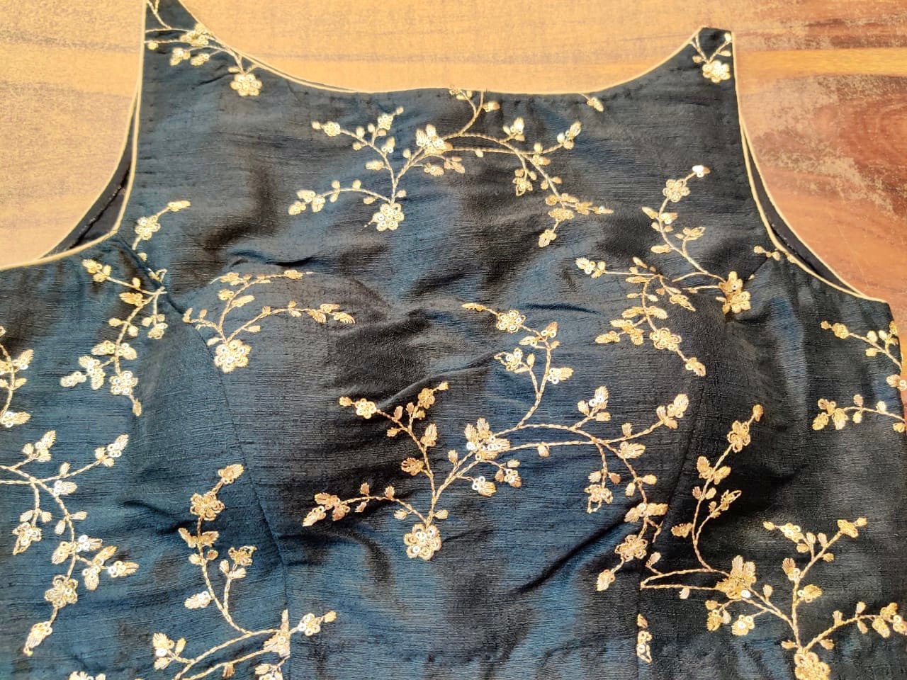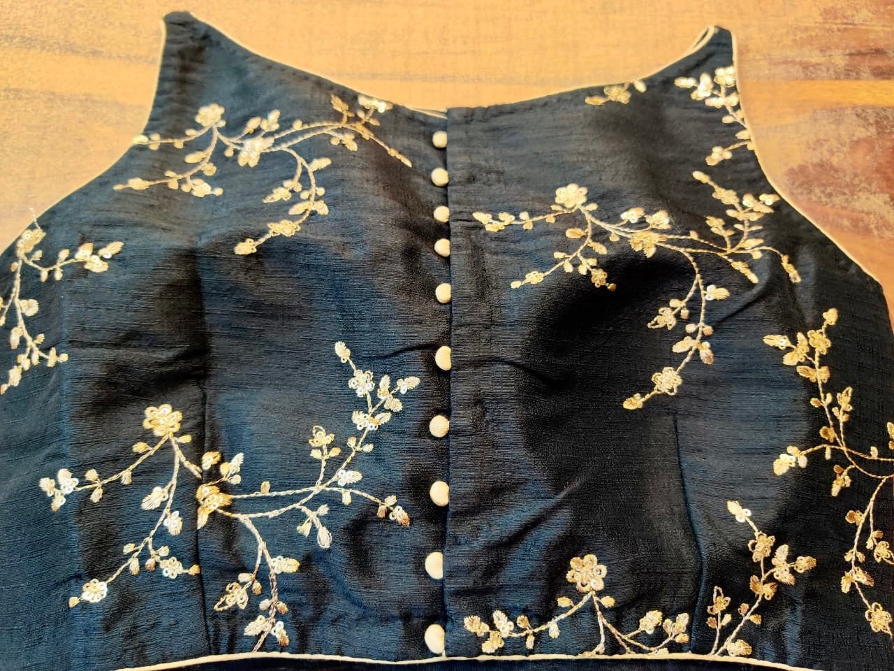 Beautiful black embroidered sleeveless saree blouse. Buy online from Pure Elegance