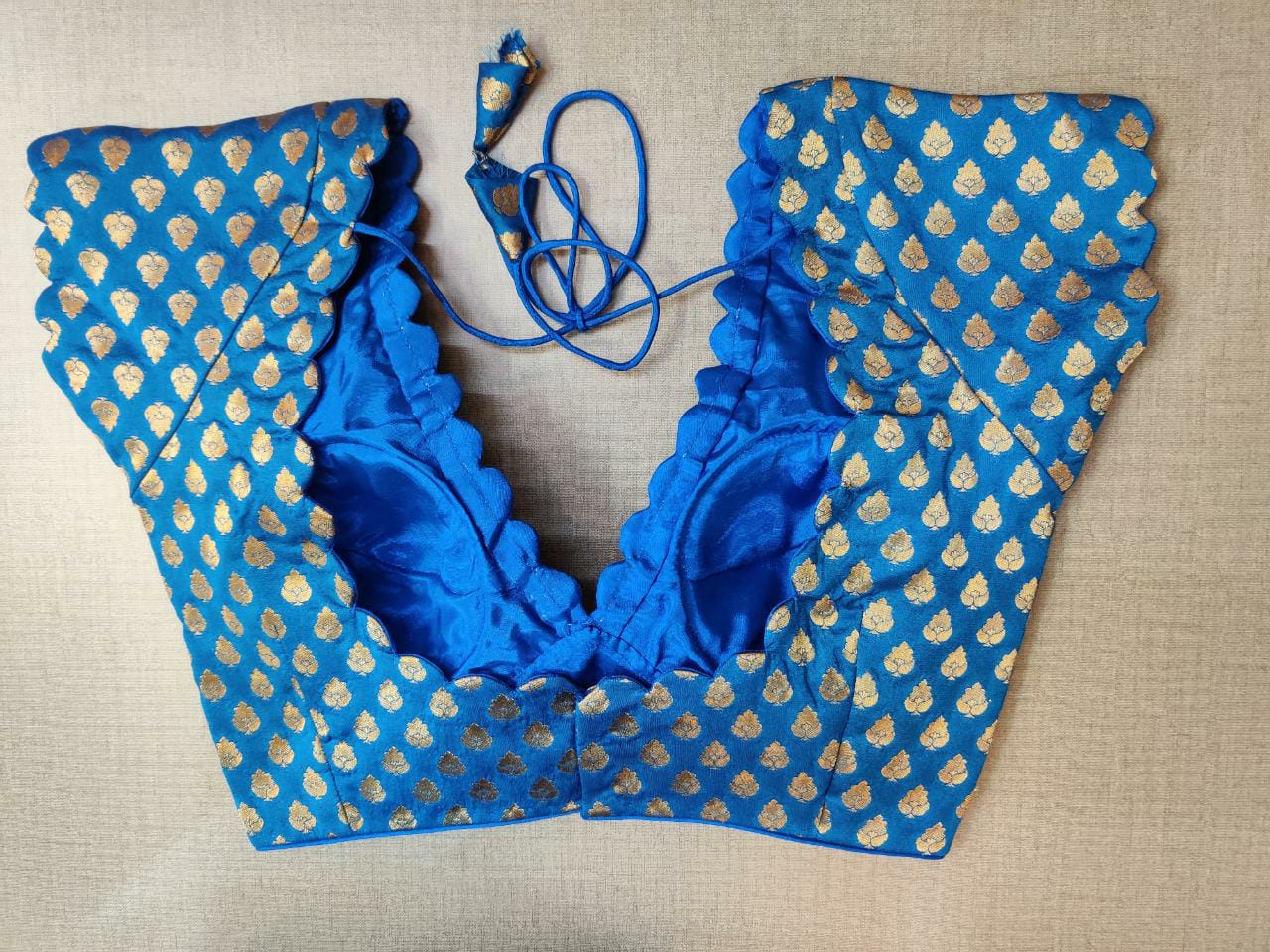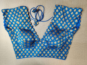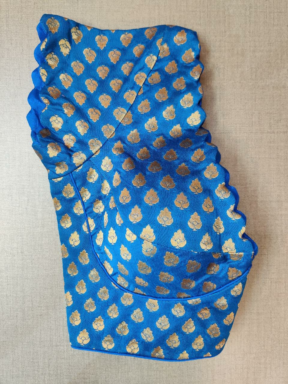 Beautiful blue Banarasi sari blouse. Buy designer blouse in USA from Pure Elegance.