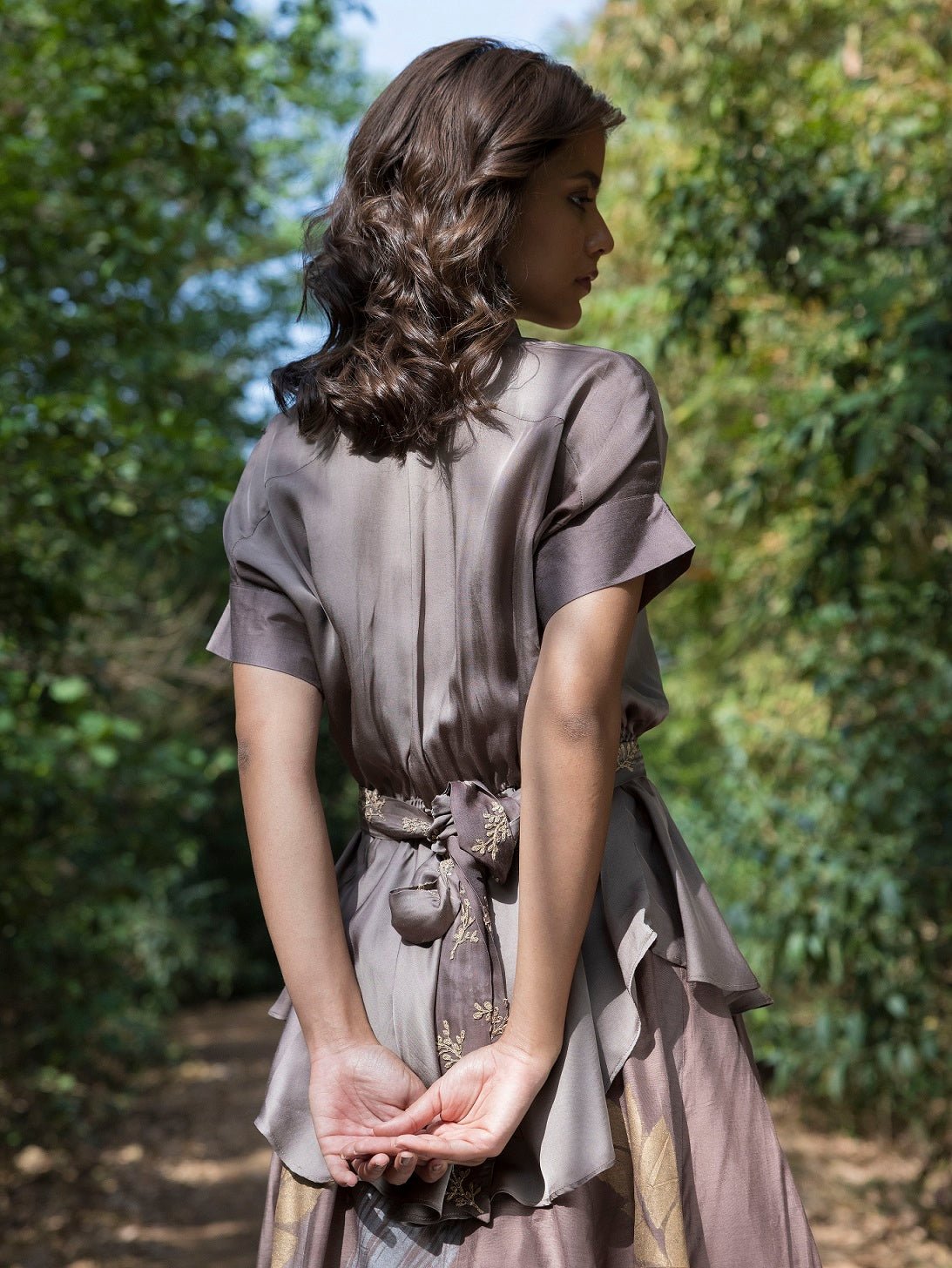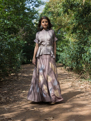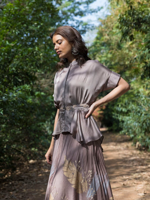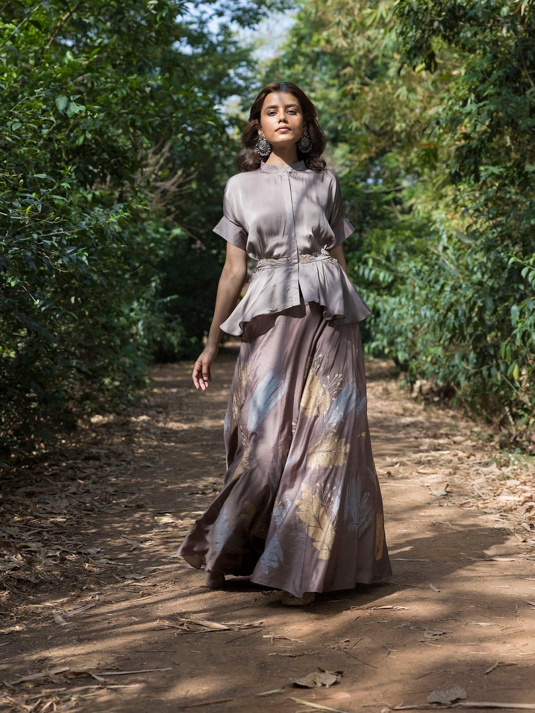 Beautiful and contemporary grey hand painted contemporary skirt set. Shop online from Pure Elegance.