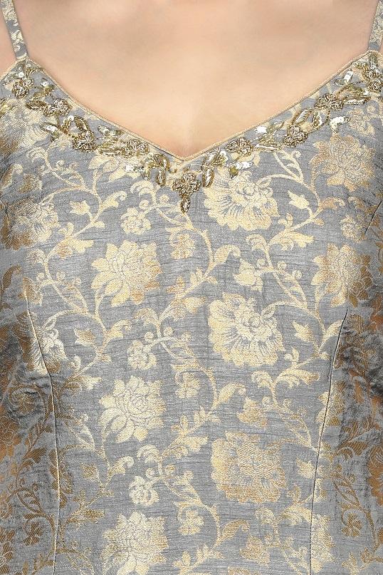 502525 Grey Embroidered Banarasi Kurta with Crepe Palazzo