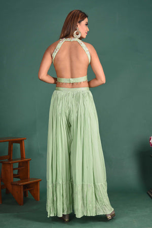 503201 Mint Green Embellished Crop Top and Palazzo and Cape