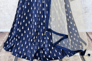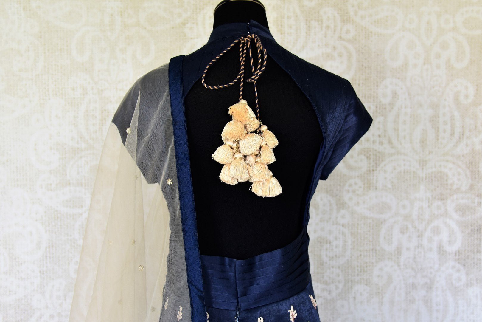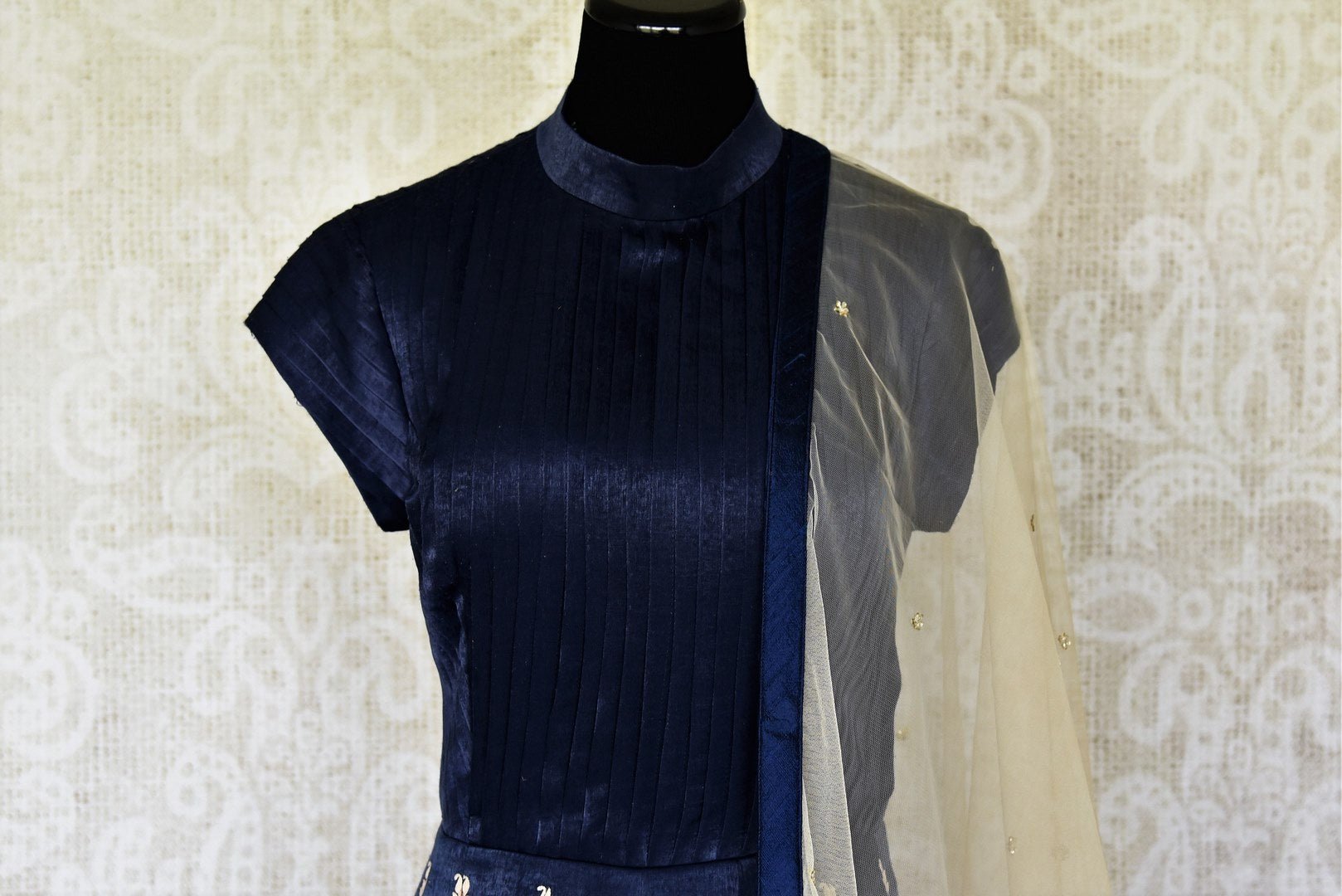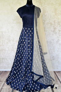 Elegant blue silk floorlength designer embroidered Anarkali suit for special occasions. It comes with a cream dupatta. Shop online from Pure Elegance store in USA.