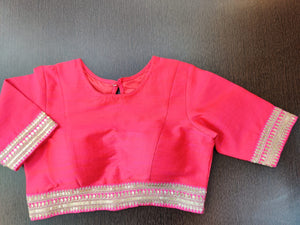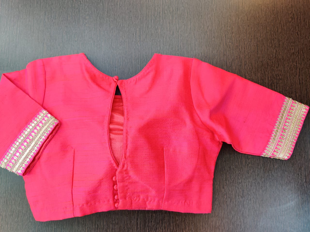 Attractive fuschia pink designer saree blouse with embroidered border. Shop designer saree blouse online in USA from Pure Elegance.