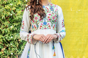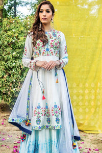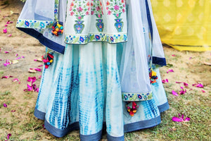 Make a fashion statement with this alluring ivory indigo hand painted embroidered chanderi kurta with tie and dye skirt by RAR studio on special occasions. It comes with a matching dupatta. Shop online at Pure Elegance or visit our store in USA!