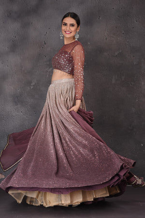 502923 Ombre Purple Sequin Work Designer Lehenga with Dupatta