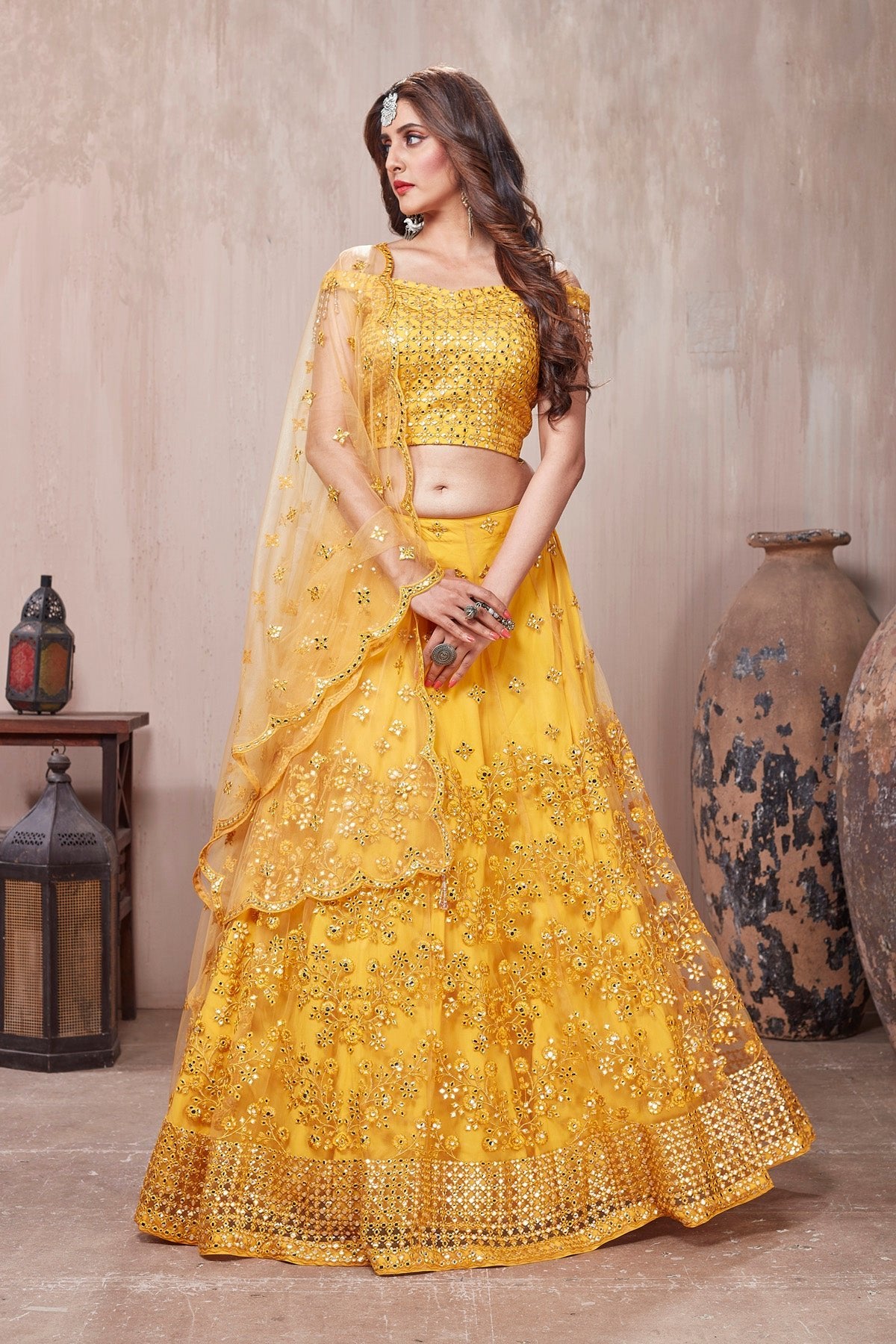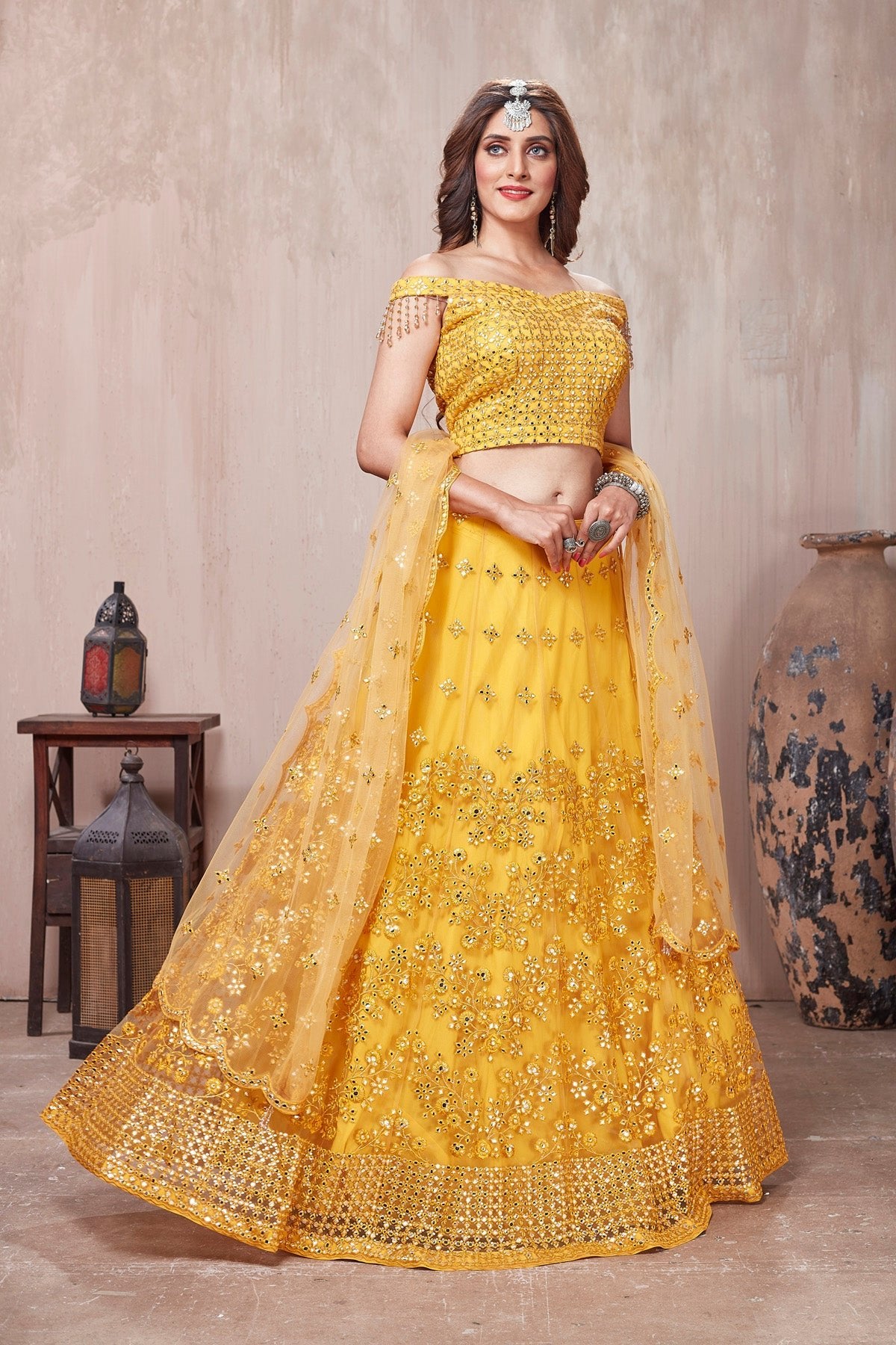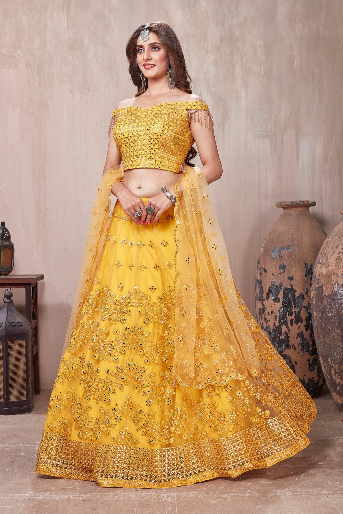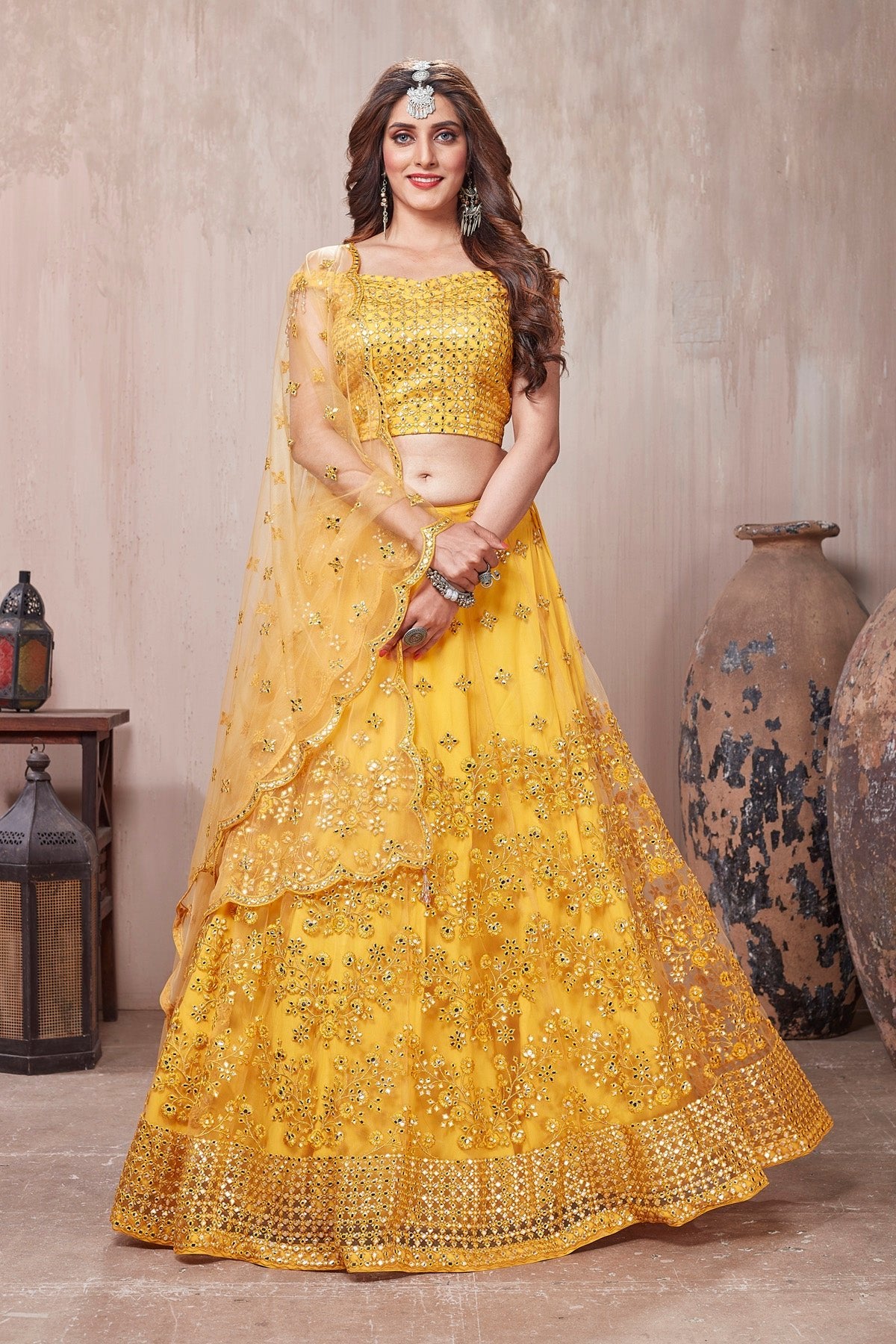 Get set to dazzle in this gorgeous yellow embroidered designer lehenga with dupatta. The lehenga is perfect ensemble for wedding occasions and parties.