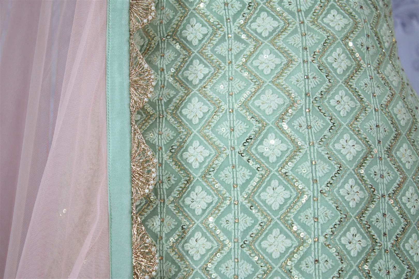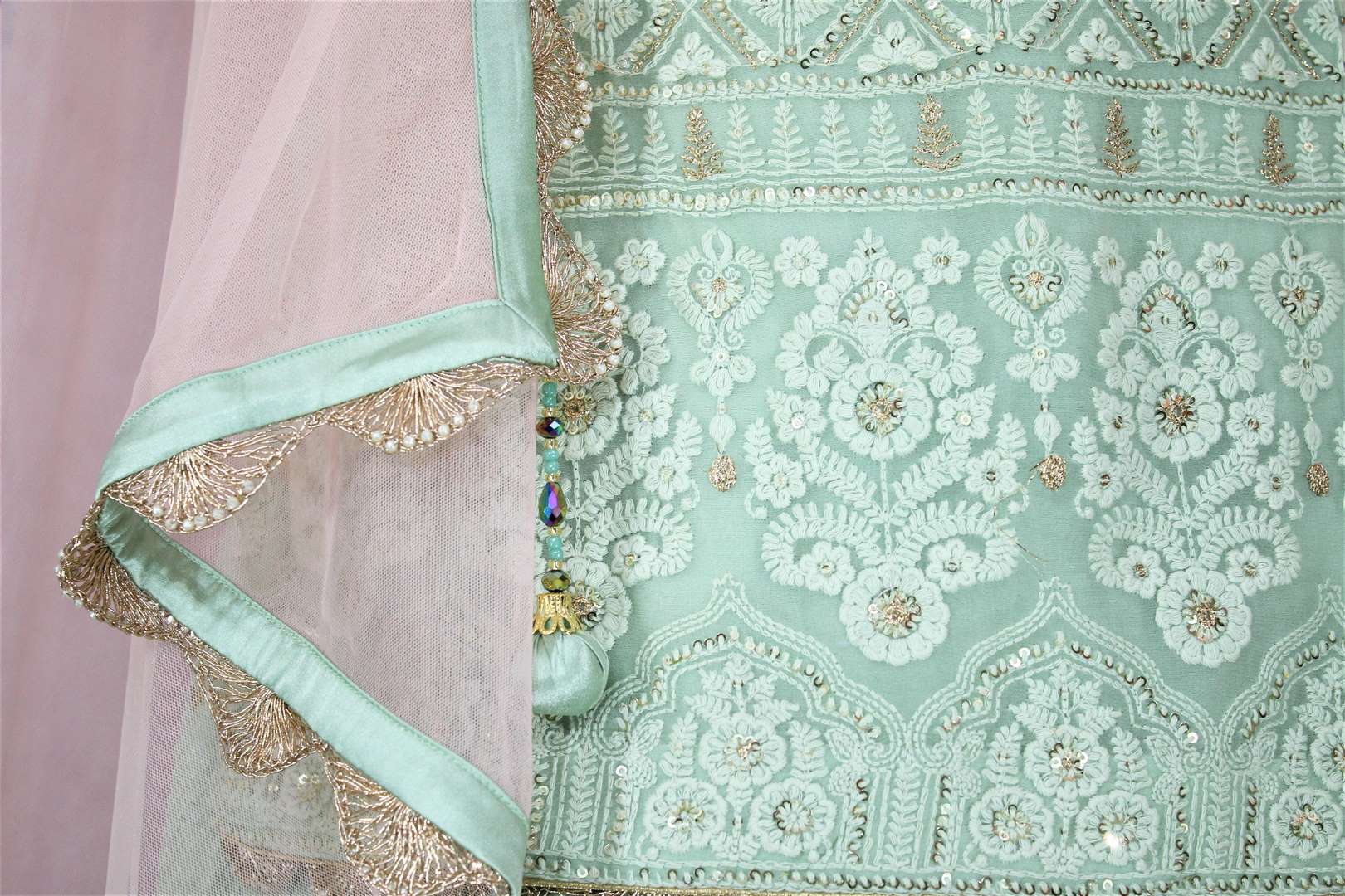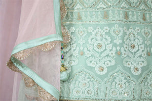 501720 Pastel Green Lucknowi Embroidery Kurta and Palazzo Set