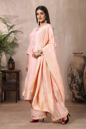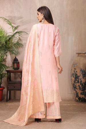 502748 Pastel Pink Embroidered Palazzo Suit with Dupatta
