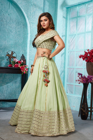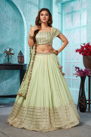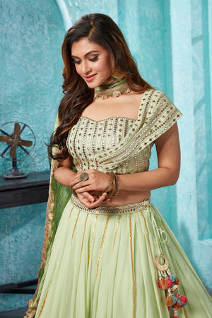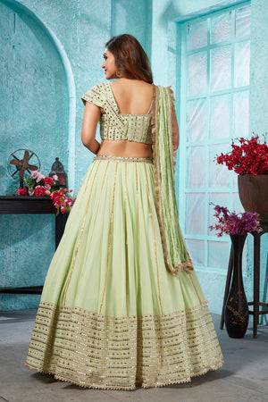 300524 Pista Green Embroidered Georgette Lehenga with Dupatta